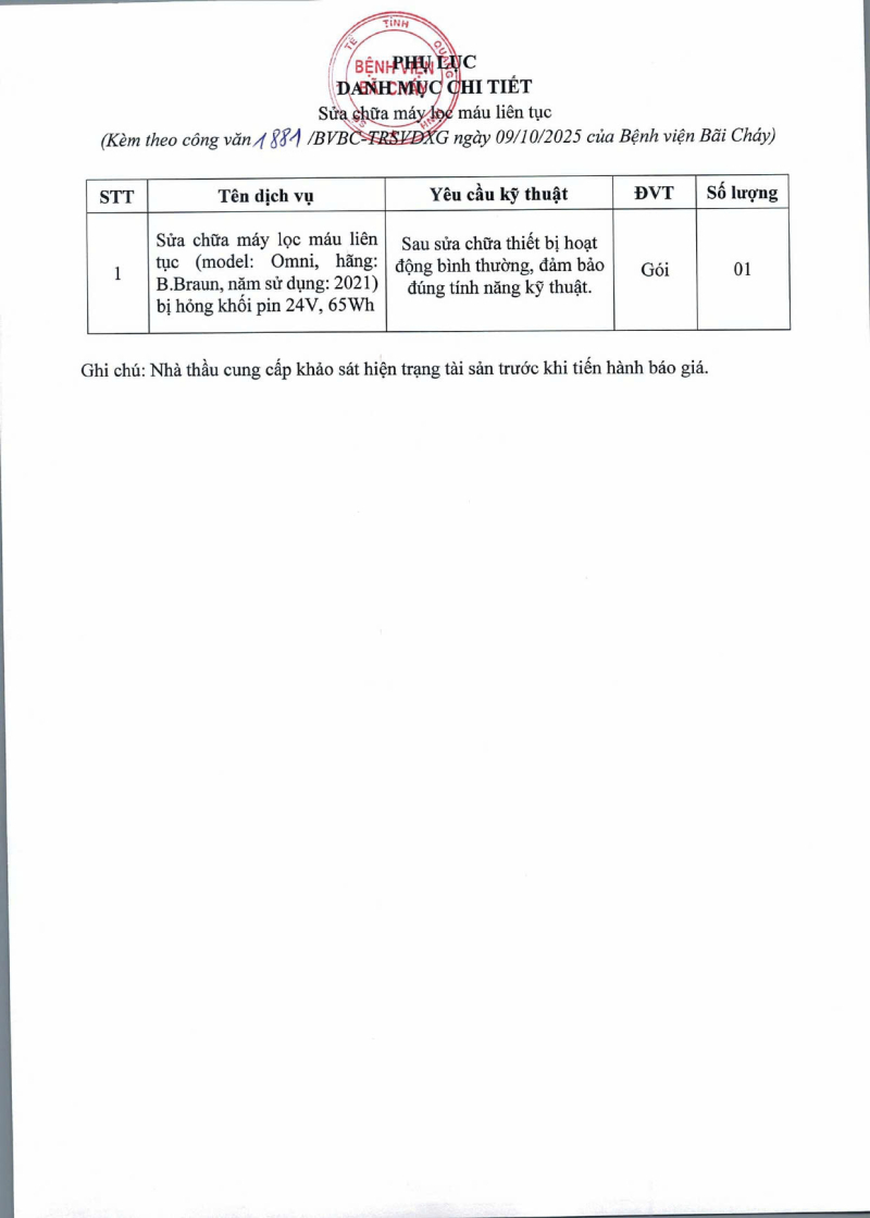 Thông báo 1881 nhu cầu sửa chữa máy lọc máu liên tục 2025/10/09 04:23 Thông báo 1881 nhu cầu sửa chữa máy lọc máu liên tục