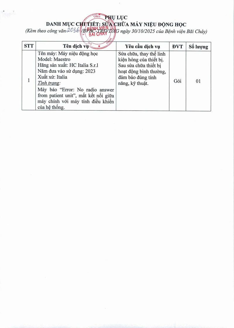 Thông báo 2036 nhu cầu sửa chữa máy niệu động học