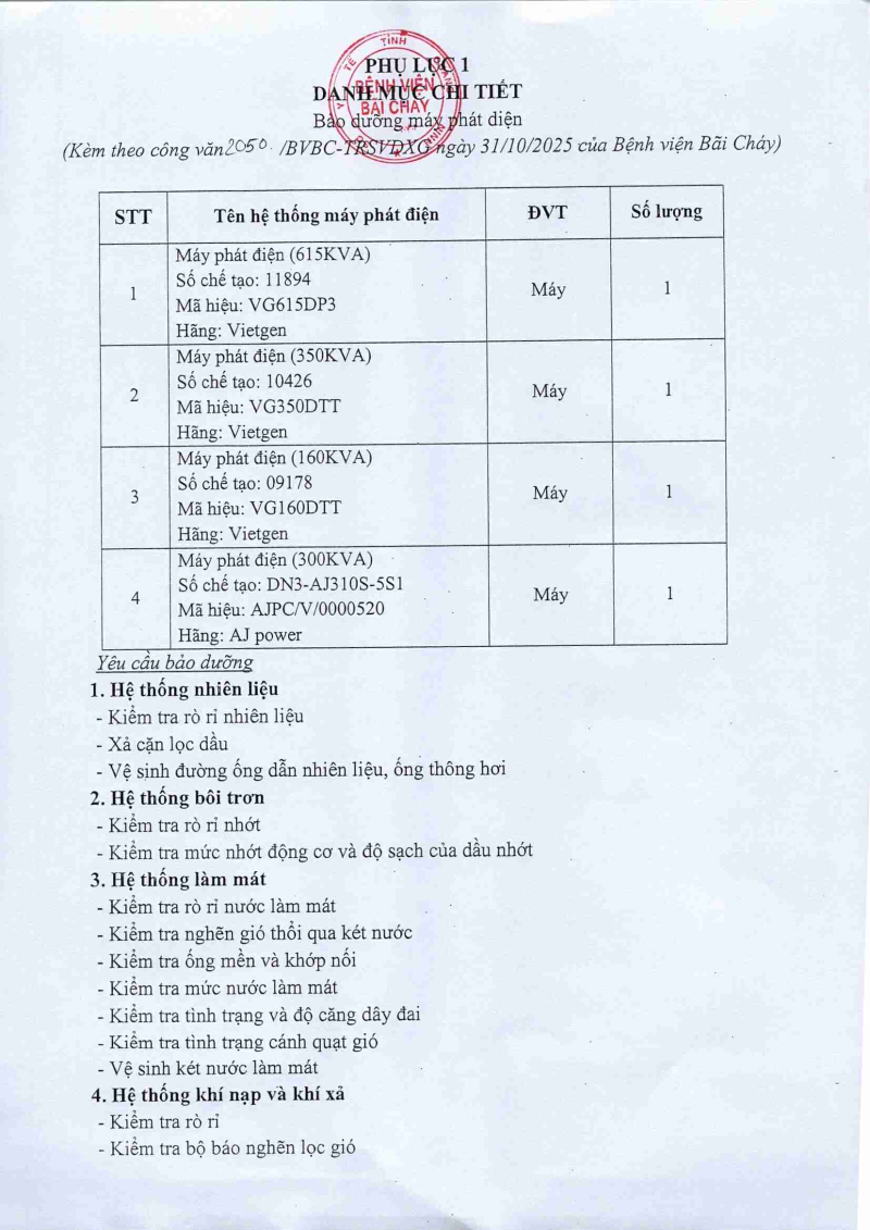 Thông báo 2050 nhu cầu bảo dưỡng và thay linh kiện máy phát điện 2025/11/03 01:28 Thông báo 2050 nhu cầu bảo dưỡng và thay linh kiện máy phát điện