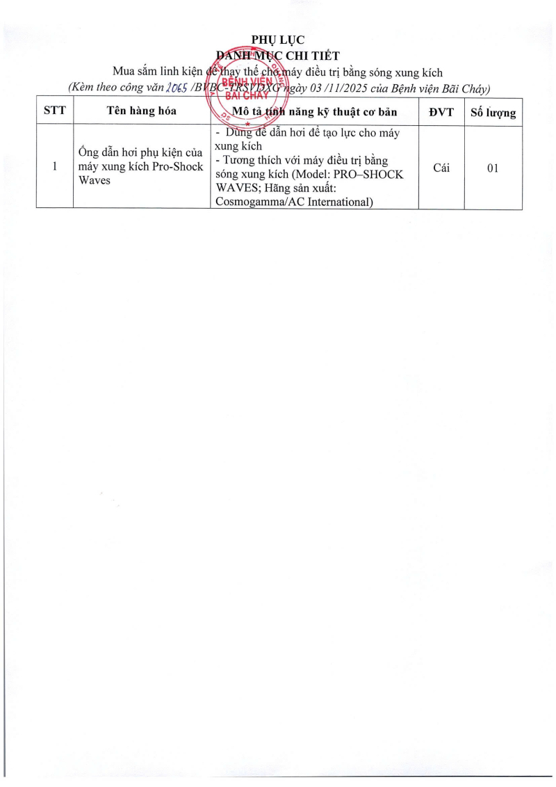 Thông báo 2065 nhu cầu mua sắm linh kiện để thay thế cho máy điều trị bằng sóng xung kích