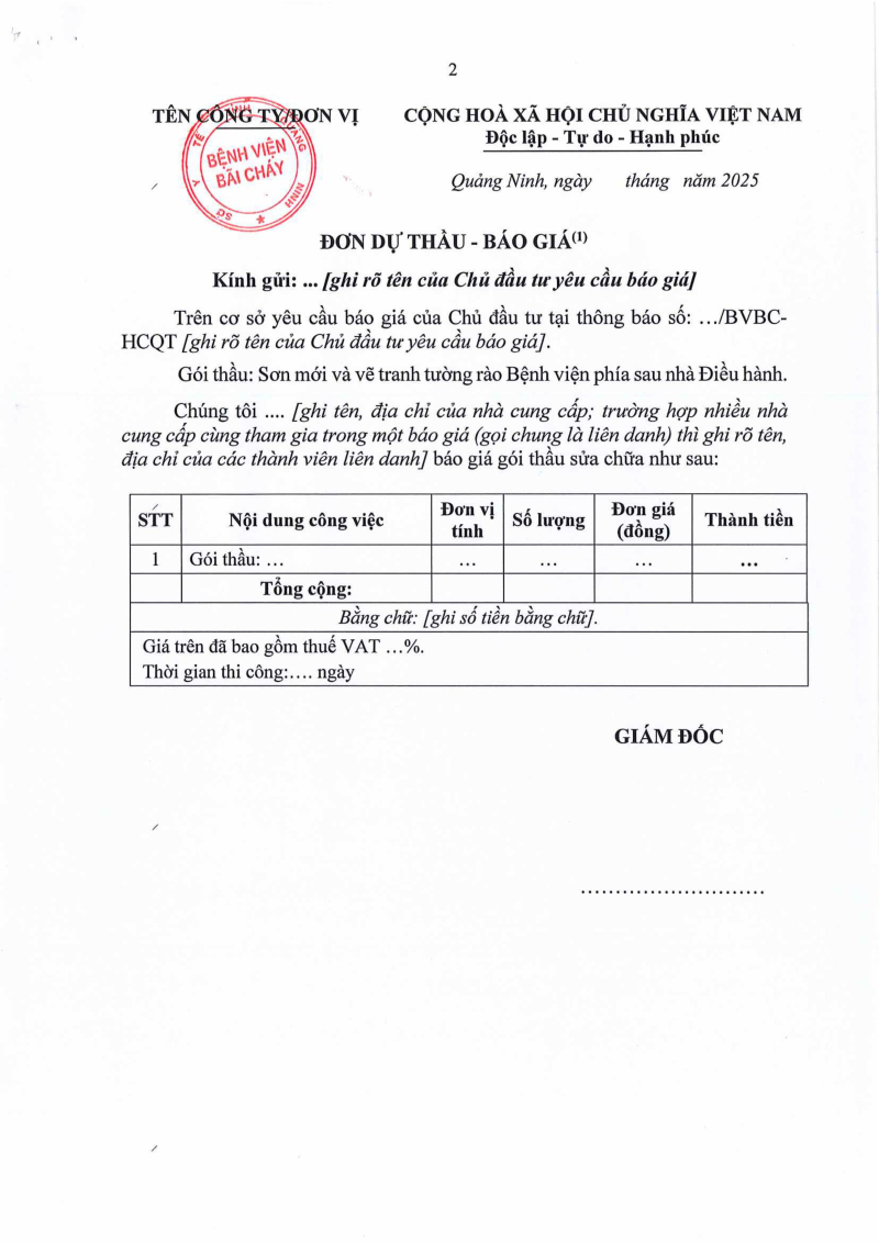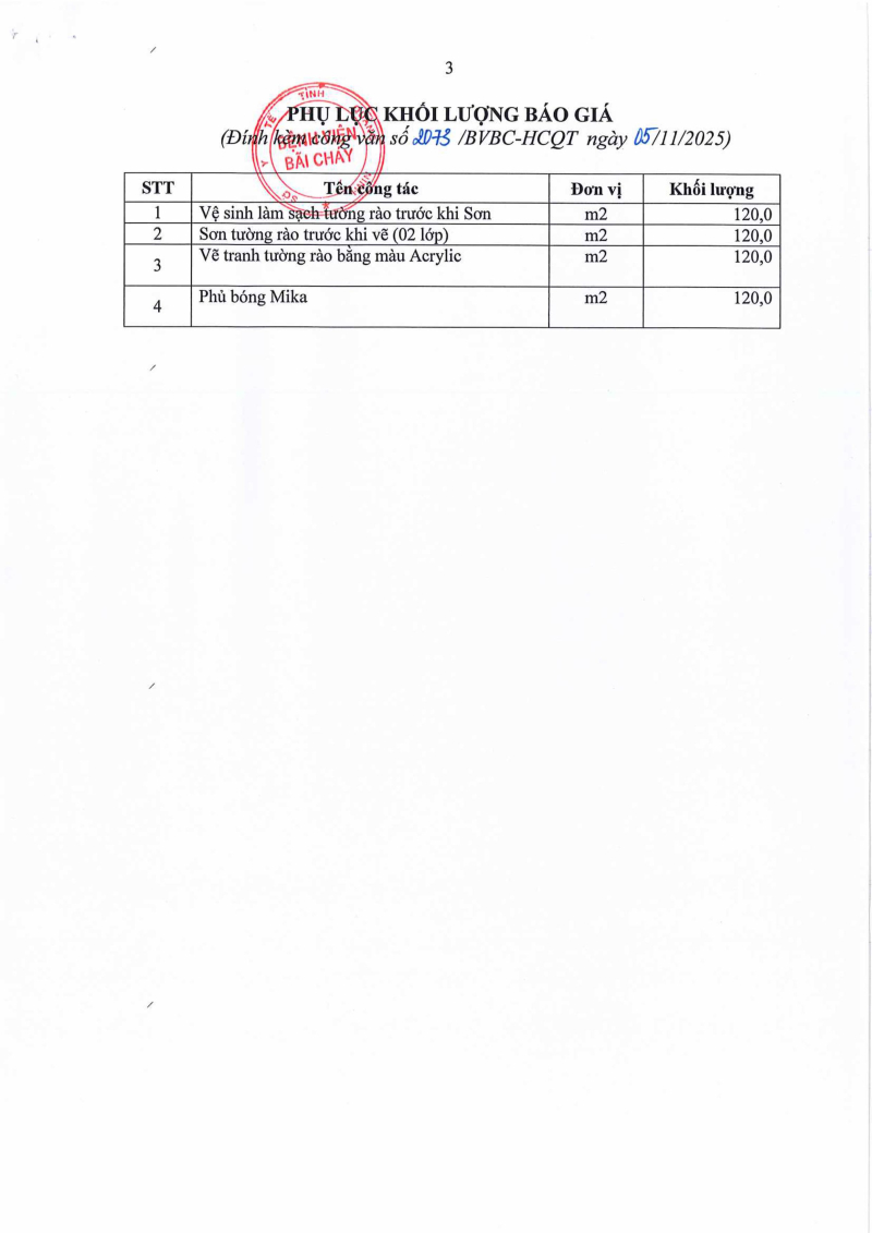 Thông báo 2073 nhu cầu thực hiện gói thầu sơn mới và vẽ tranh tường rào bệnh viện