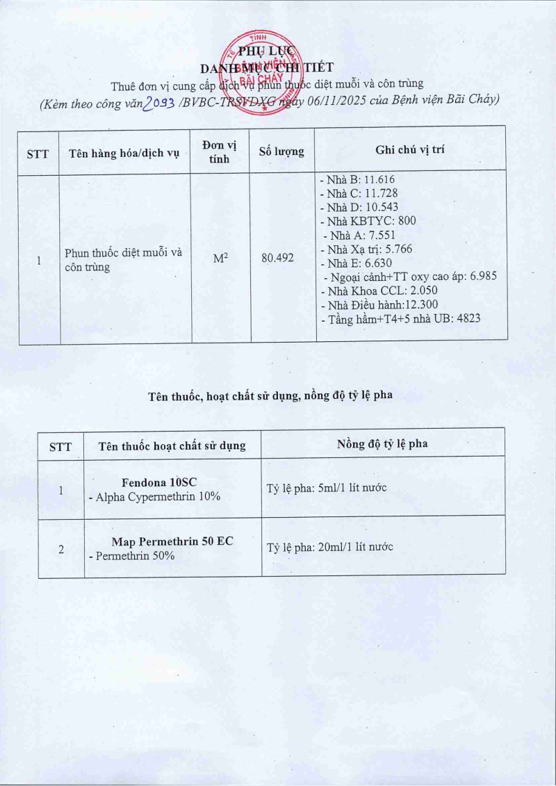 Thông báo 2093 nhu cầu thuê đơn vị cung cấp dịch vụ phun thuốc diệt muỗi và côn trùng