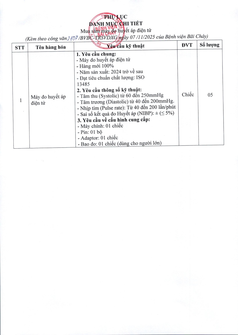 Thông báo 2107 nhu cầu mua sắm máy đo huyết áp điện tử