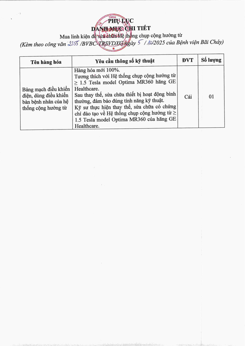 Thông báo 2355 nhu cầu mua linh kiện để sửa chữa hệ thống chụp cộng hưởng từ