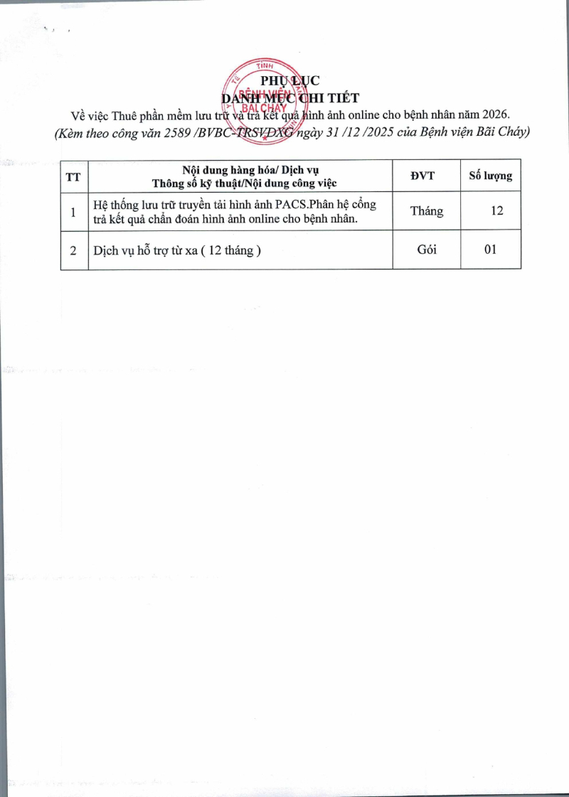 Thông báo 2589 thuê phần mềm lưu trữ và trả kết quả hình ảnh online cho bệnh nhân năm 2026