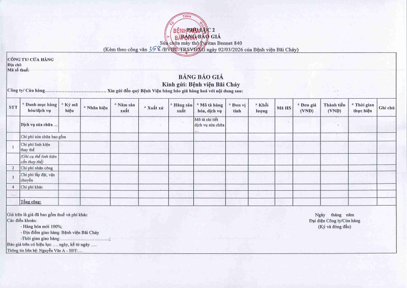 Thông báo số 622 về nhu cầu bảo dưỡng định kỳ máy hấp tiệt trùng HS–5035