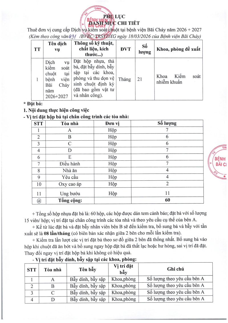 Thông báo 491 nhu cầu thuê đơn vị cung cấp dịch vụ kiểm soát chuột tại Bệnh viện Bãi Cháy