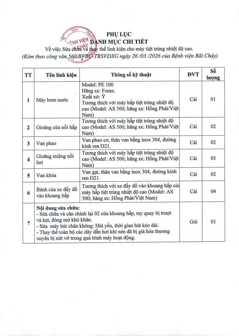Thông báo 560 sửa chữa và thay thế linh kiện cho máy tiệt trùng nhiệt độ cao