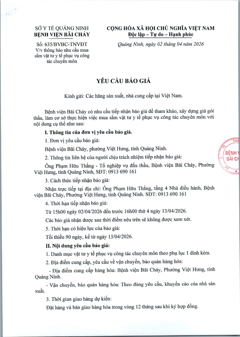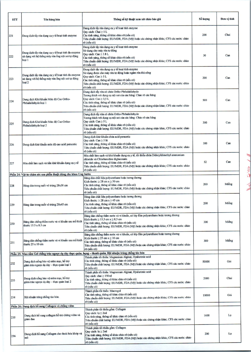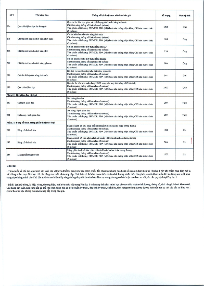 Thông báo 635 về nhu cầu mua sắm vật tư y tế phục vụ công tác chuyên môn