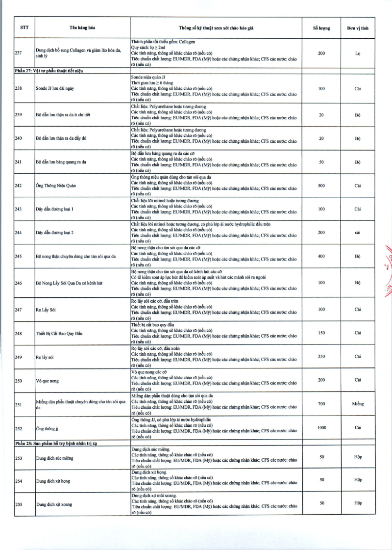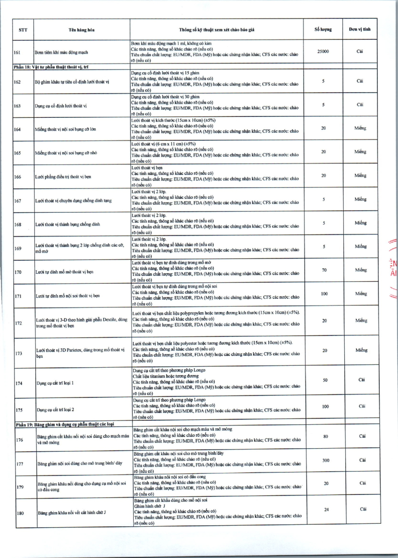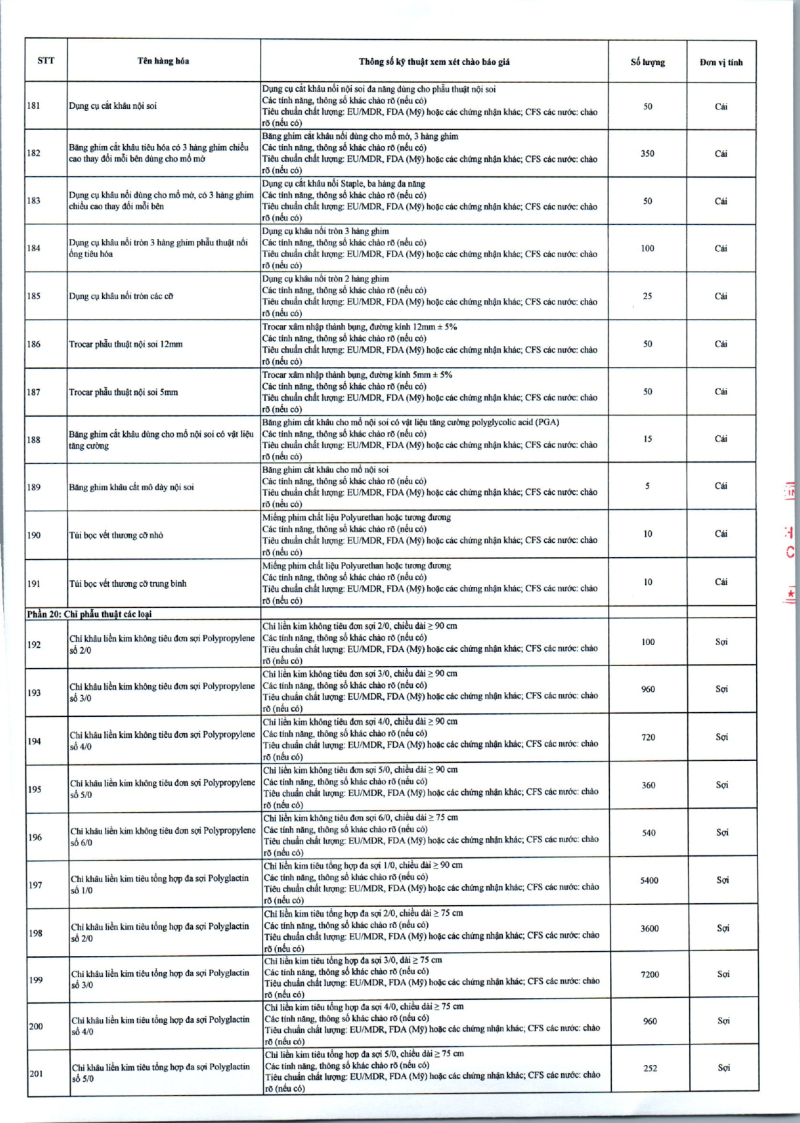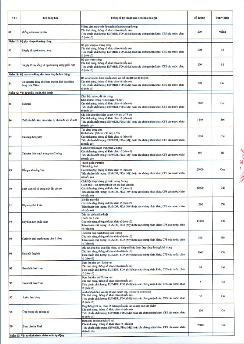 Thông báo 635 về nhu cầu mua sắm vật tư y tế phục vụ công tác chuyên môn
