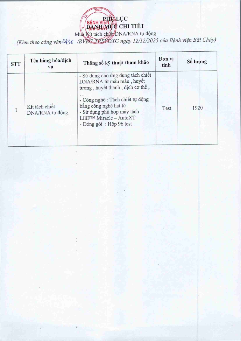 Thông báo nhu cầu mua Kít tách chiết DNA/RNA tự động 2025/12/12 04:34 Thông báo nhu cầu mua Kít tách chiết DNA/RNA tự động
