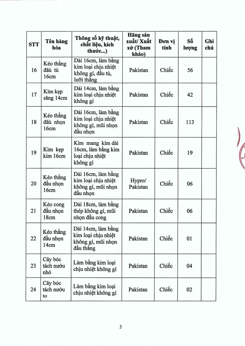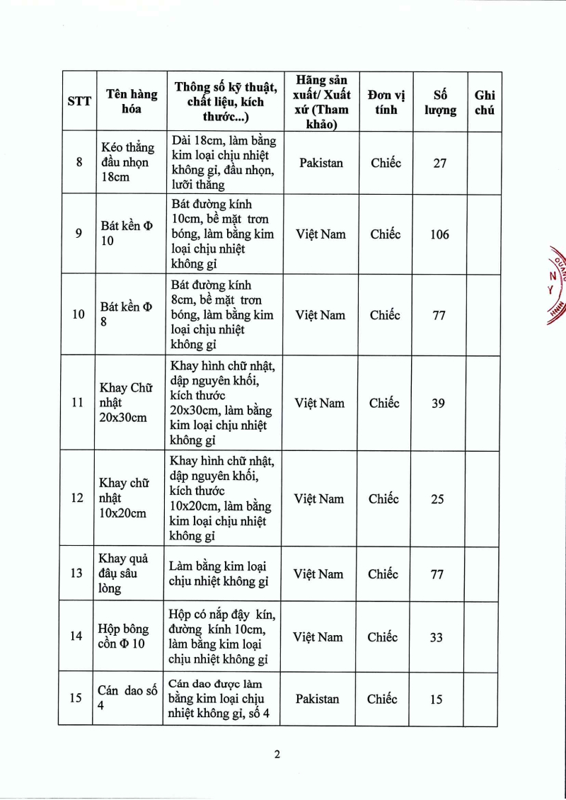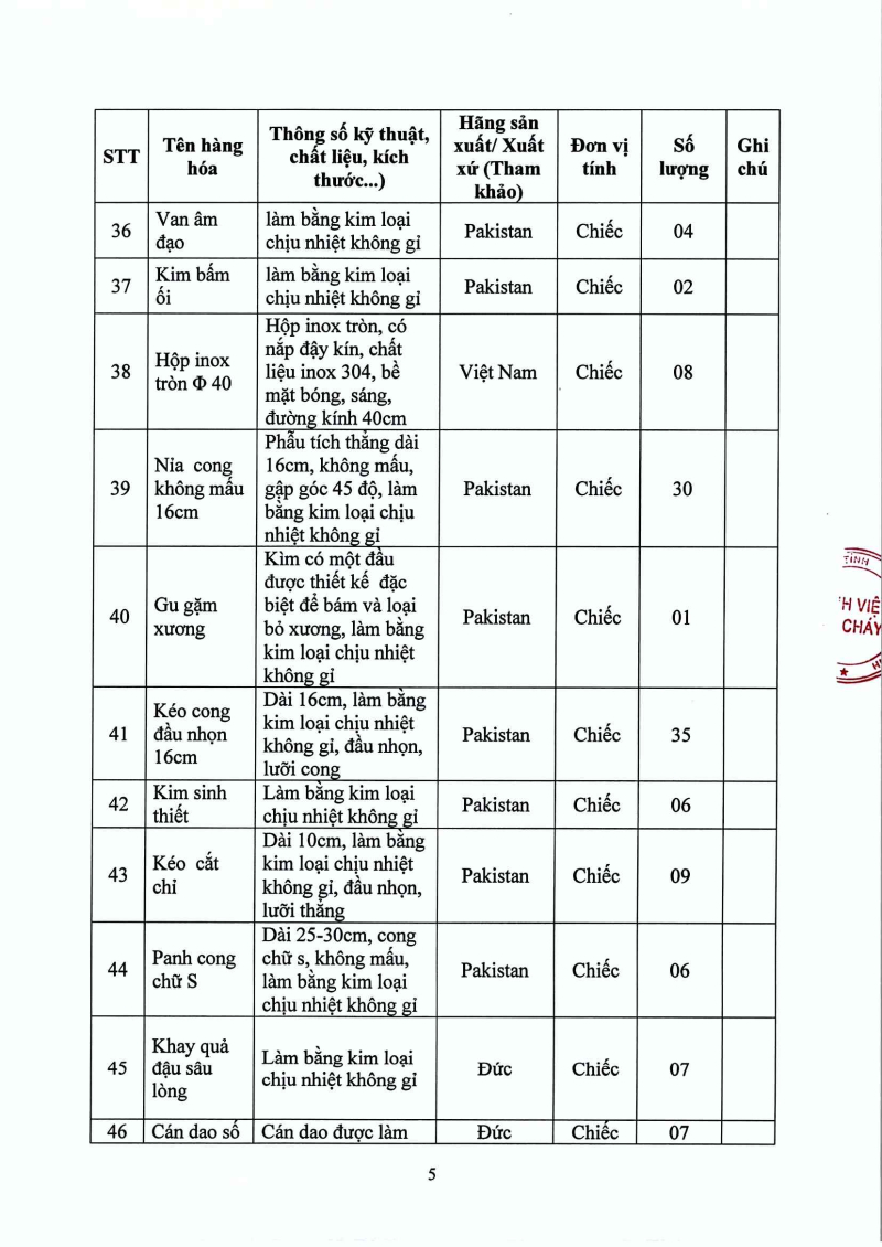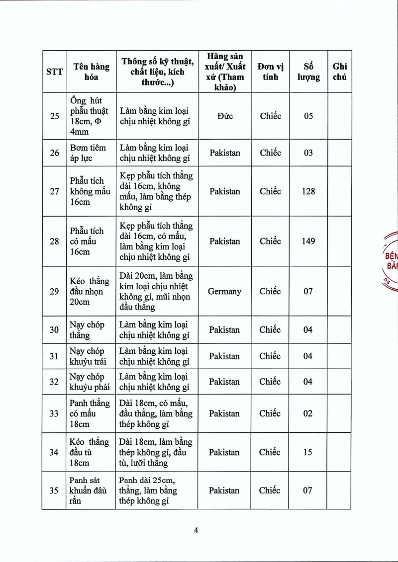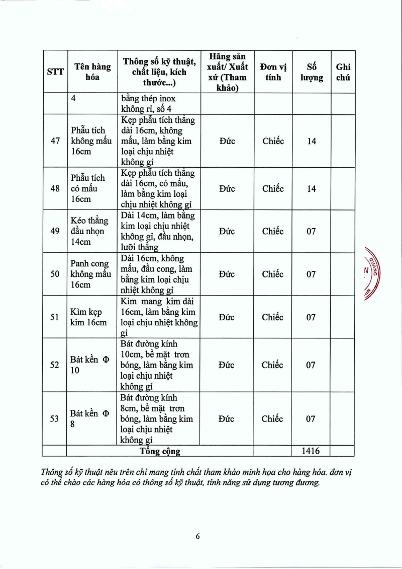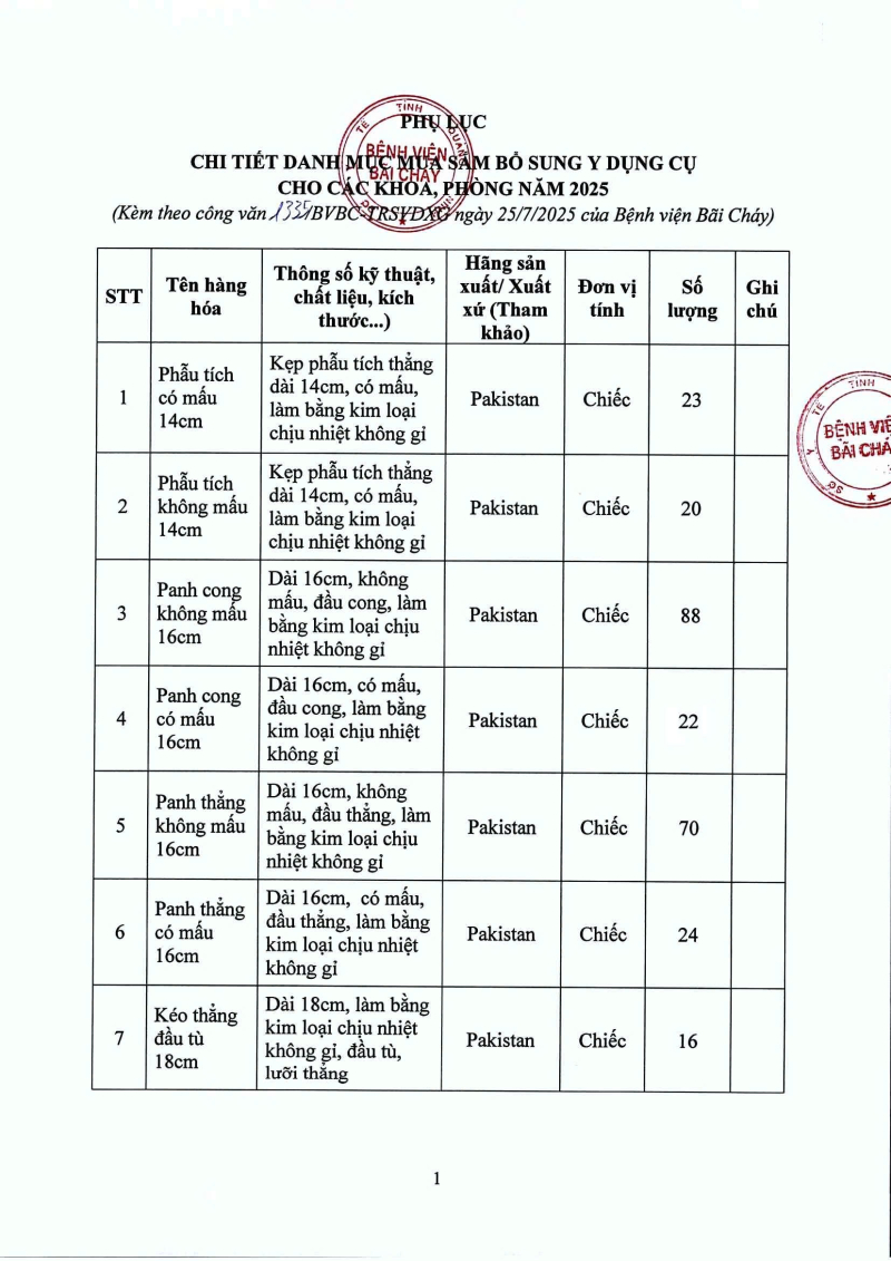 Thông báo 1335 nhu cầu mua sắm bổ sung y dụng cụ cho các khoa, phòng năm 2025