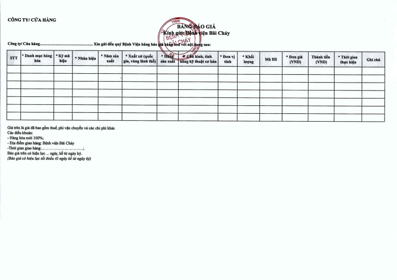 Thông báo 635 về nhu cầu mua sắm vật tư y tế phục vụ công tác chuyên môn