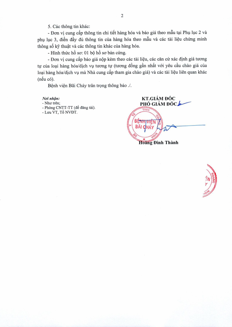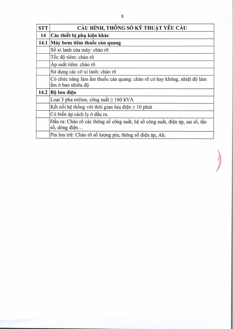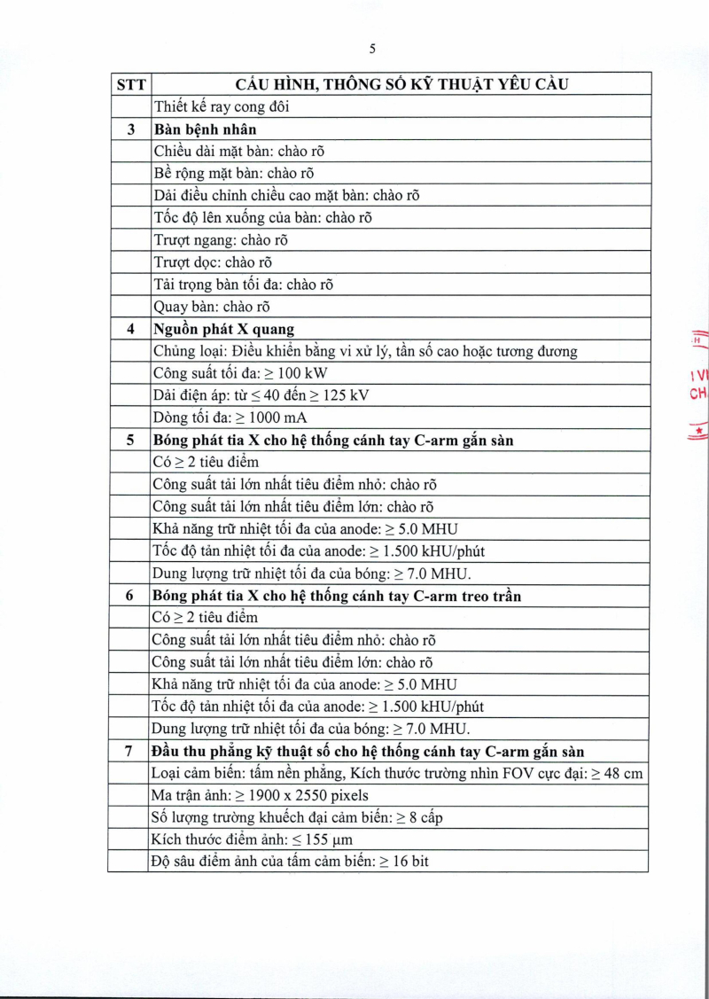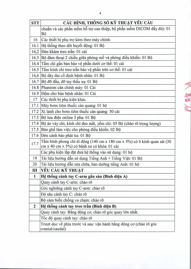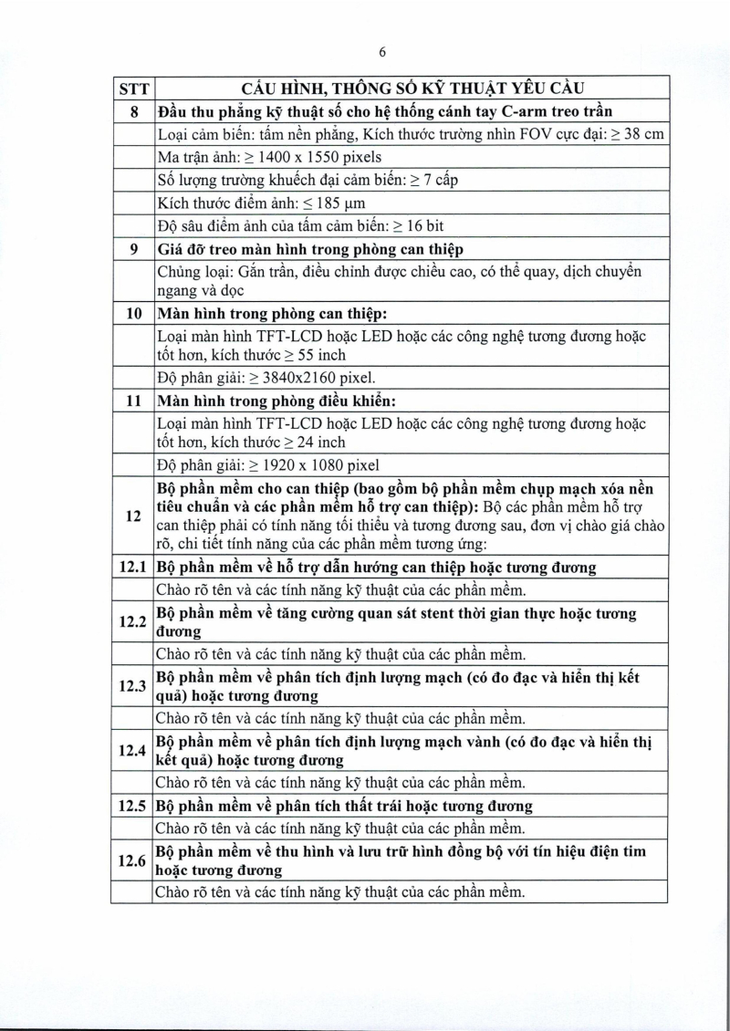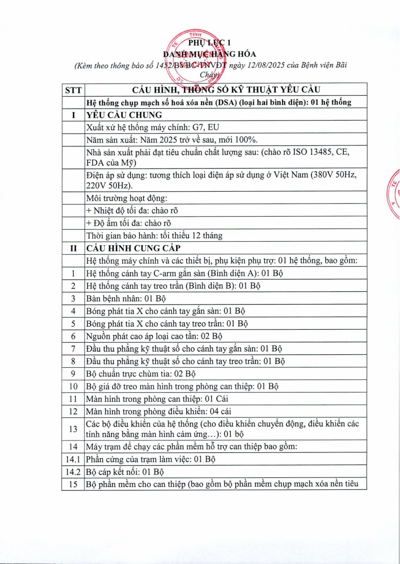 Thông báo số 1452 về nhu cầu mua sắm hệ thống chụp mạch xóa nền DSA 2 bình diện