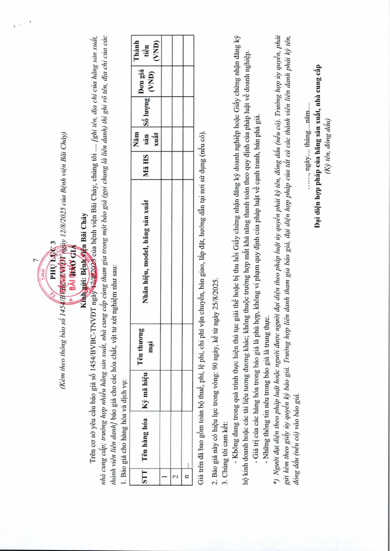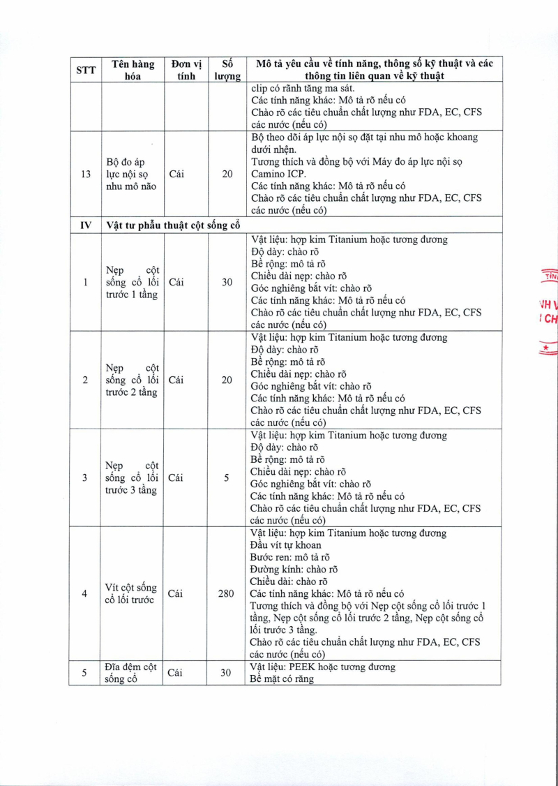 Thông báo số 1454 về nhu cầu mua sắm vật tư can thiệp thần kinh cột sống phục vụ công tác chuyên môn đợt 2 2025/08/15 02:53
