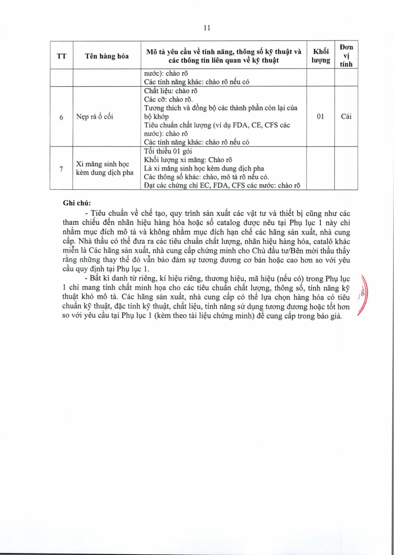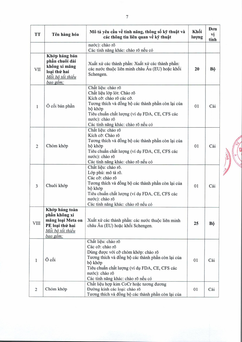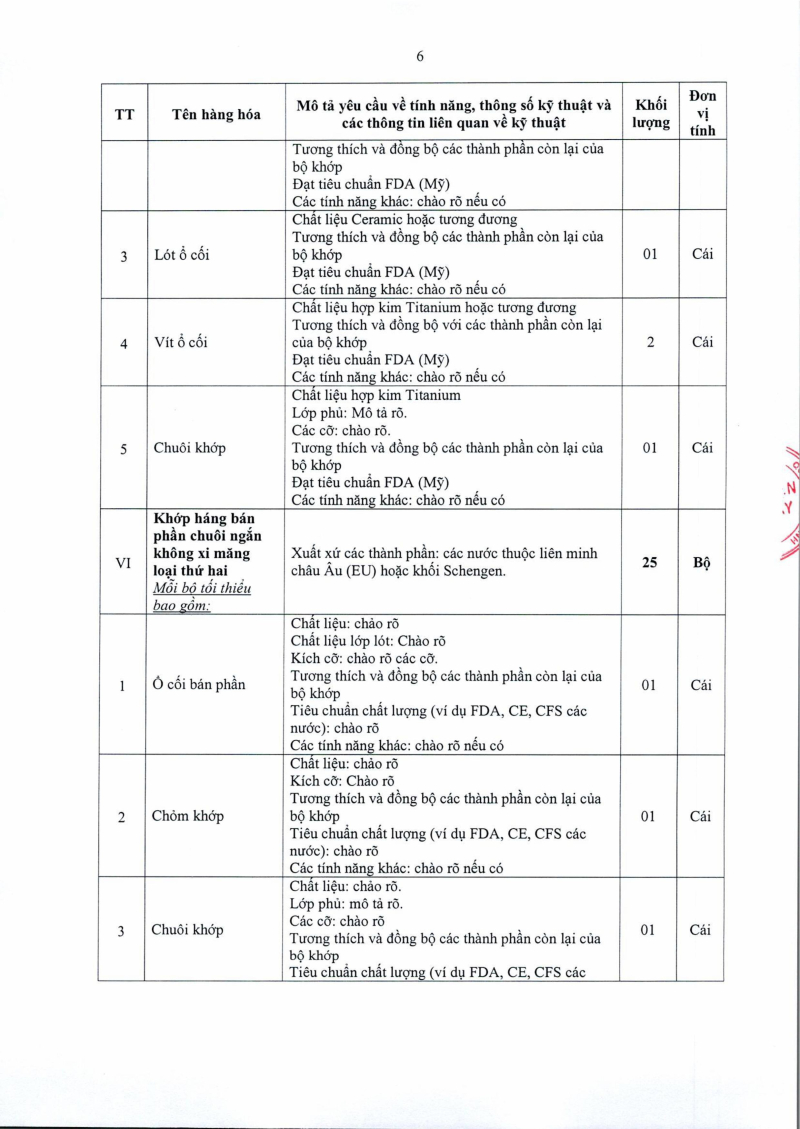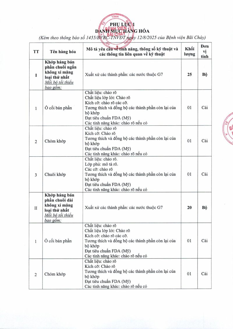 Thông báo số 1455 về nhu cầu mua sắm khớp háng nhân tạo phục vụ công tác chuyên môn năm 2025, 2026 2025/08/13 03:39