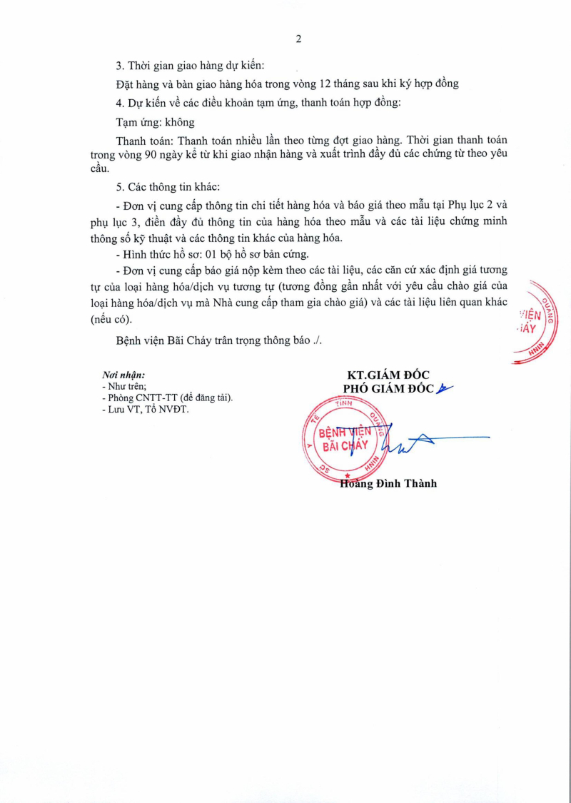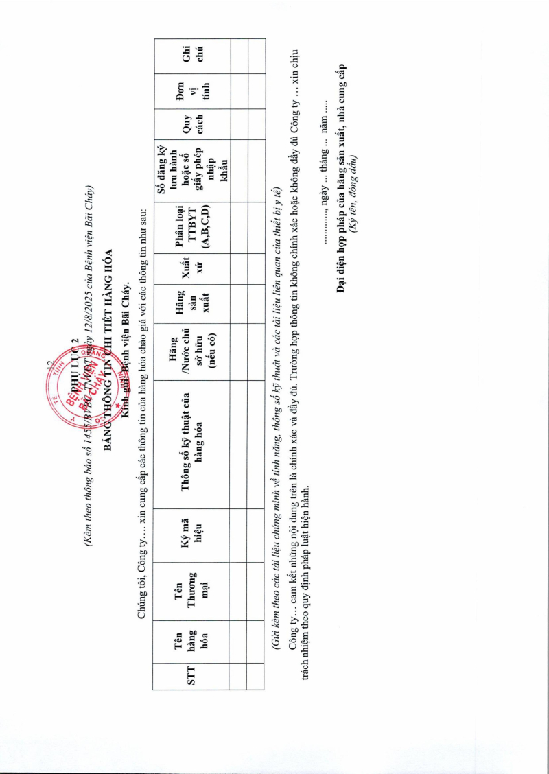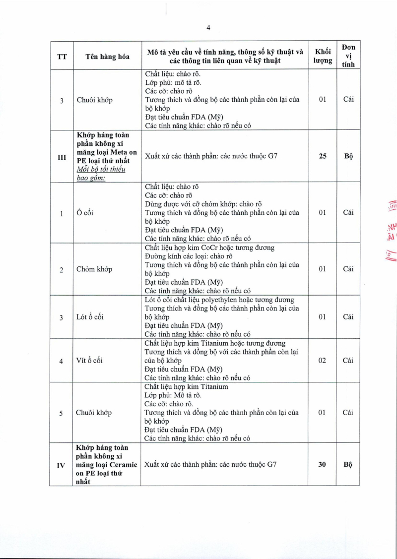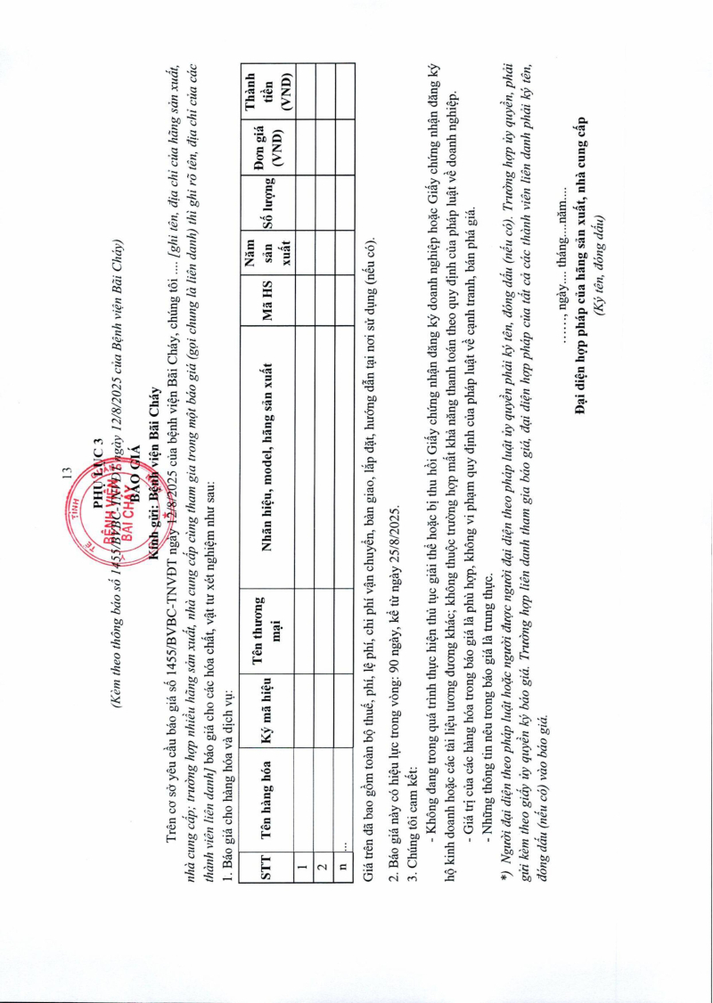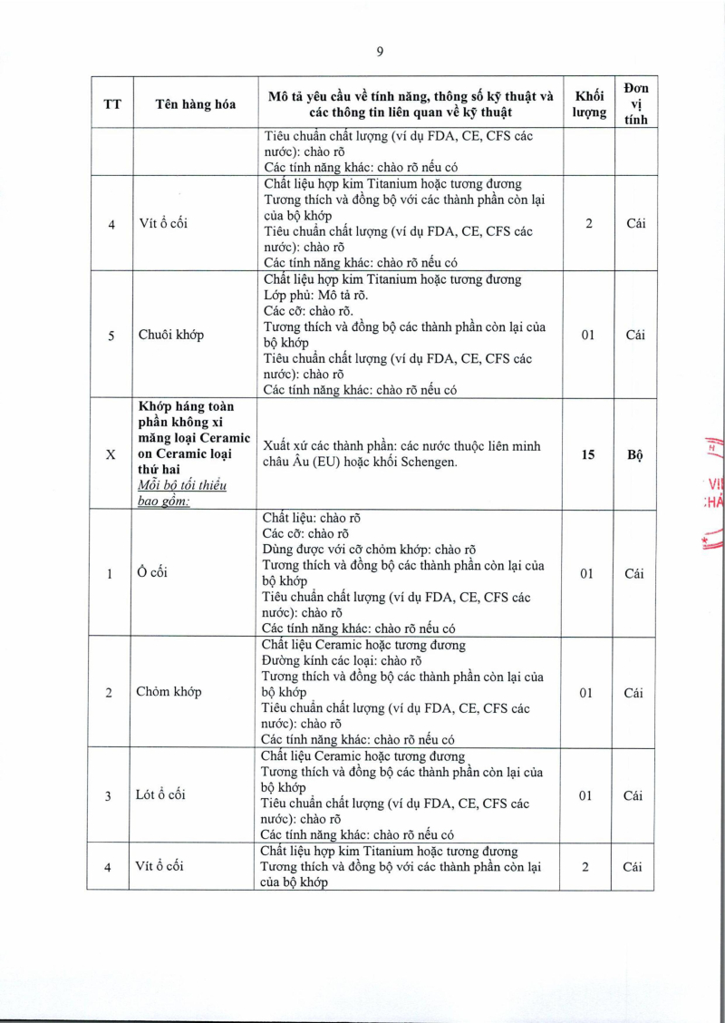 Thông báo số 1455 về nhu cầu mua sắm khớp háng nhân tạo phục vụ công tác chuyên môn năm 2025, 2026 2025/08/13 03:39
