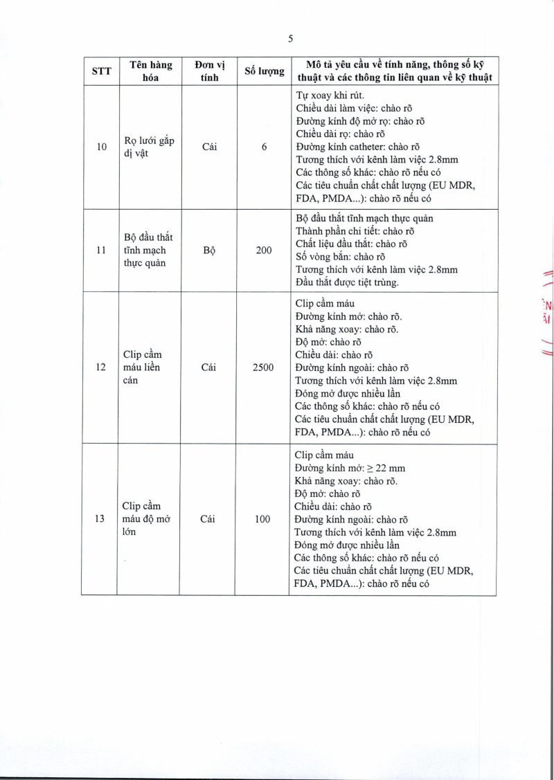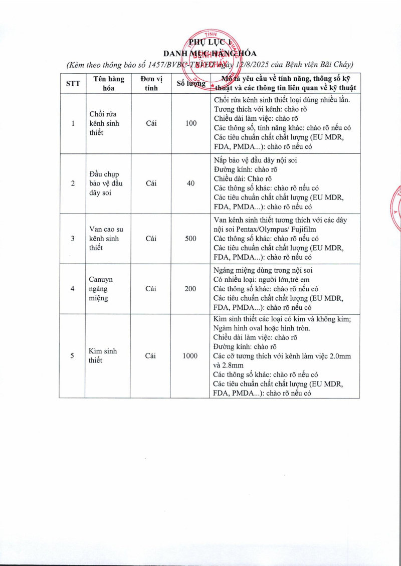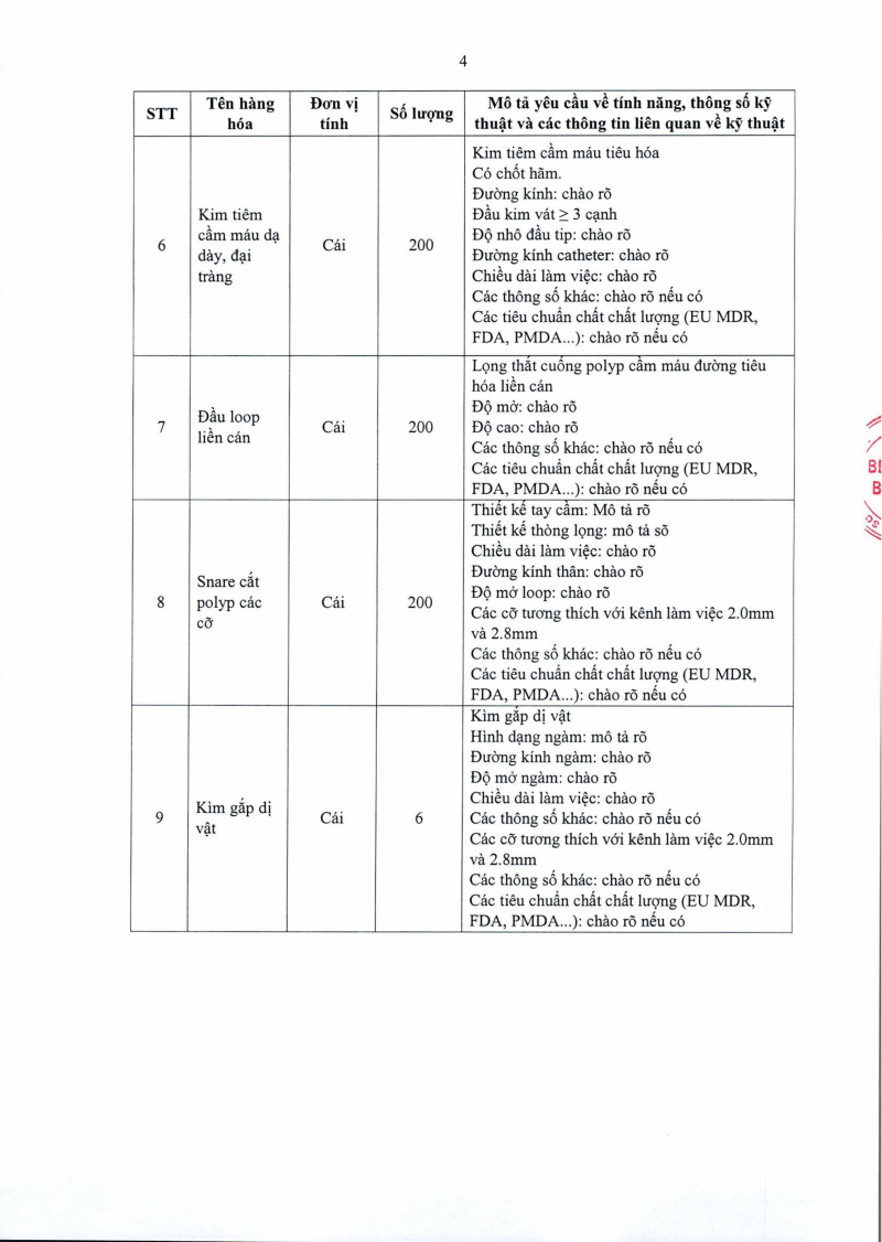 Thông báo số 1457 về nhu cầu mua sắm vật tư phục vụ chẩn đoán và can thiệp nội soi tiêu hóa năm 2025, 2026 2025/08/13 03:45
