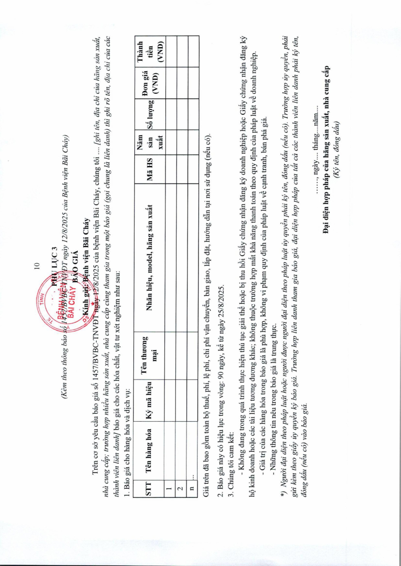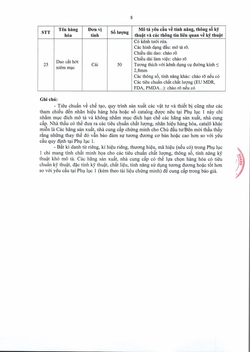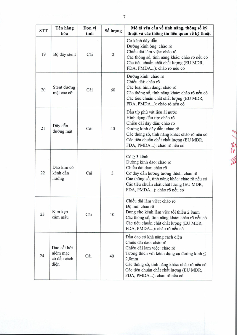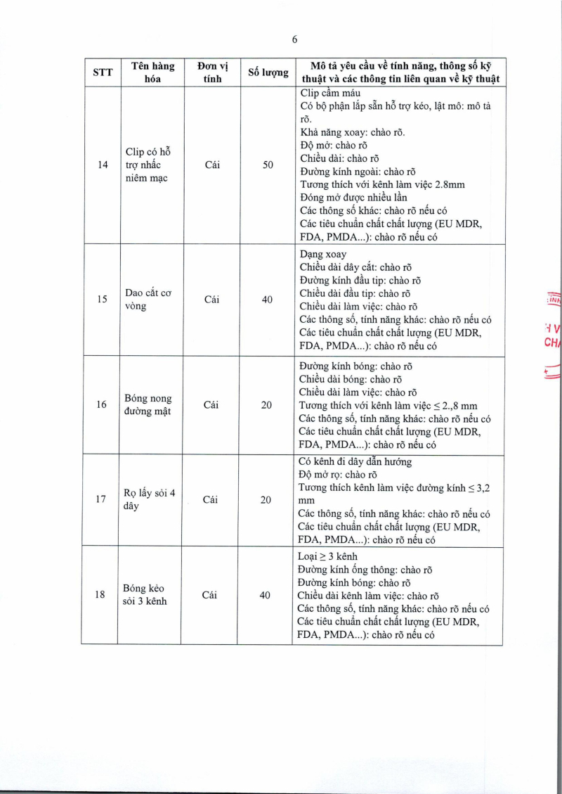 Thông báo số 1457 về nhu cầu mua sắm vật tư phục vụ chẩn đoán và can thiệp nội soi tiêu hóa năm 2025, 2026 2025/08/13 03:45