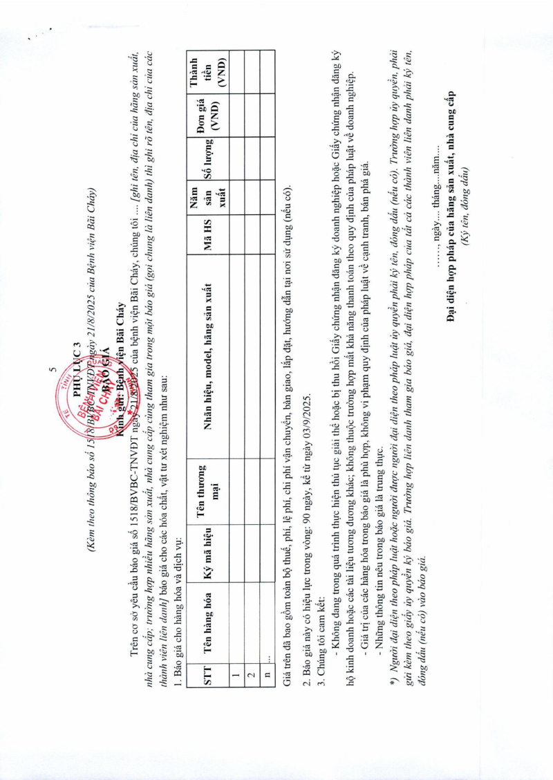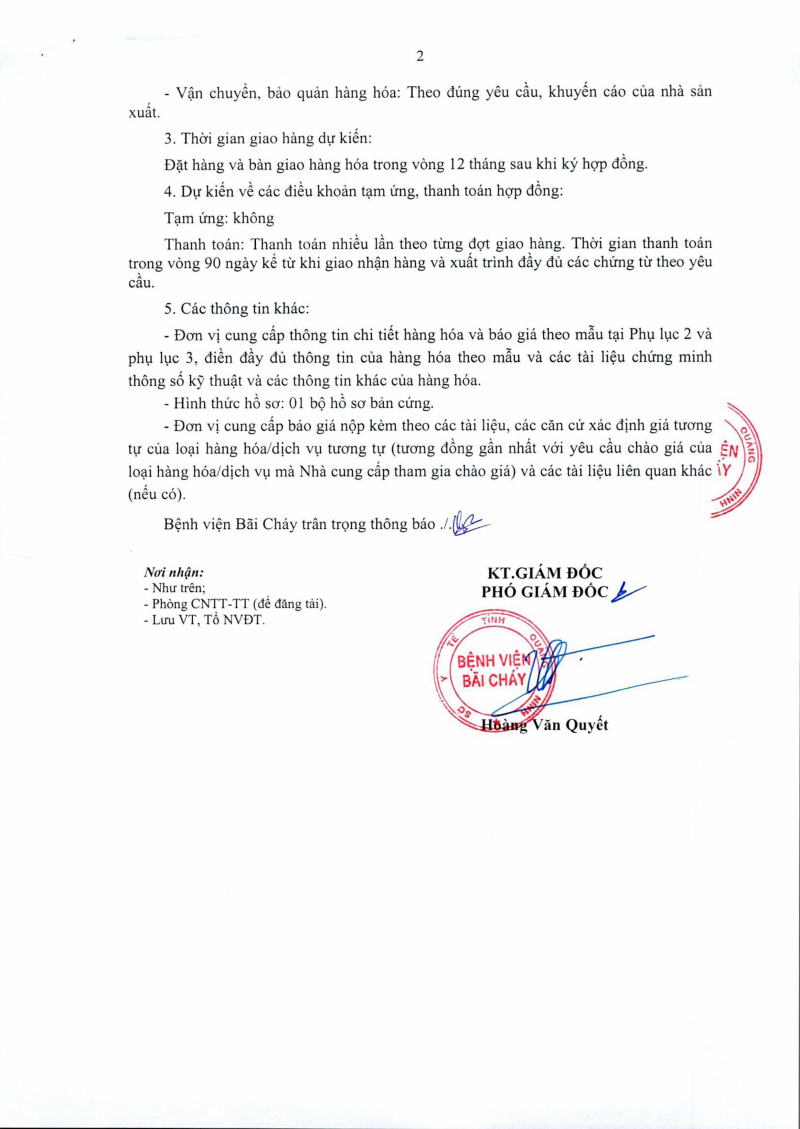 Thông báo số 1518 về nhu cầu mua sắm vật tư y tế phục vụ đề tài nghiên cứu ứng dụng kỹ thuật Nuss cải tiến điều trị lõm ngực bẩm sinh tại bệnh viện Bãi Cháy 2025/08/21 09:21