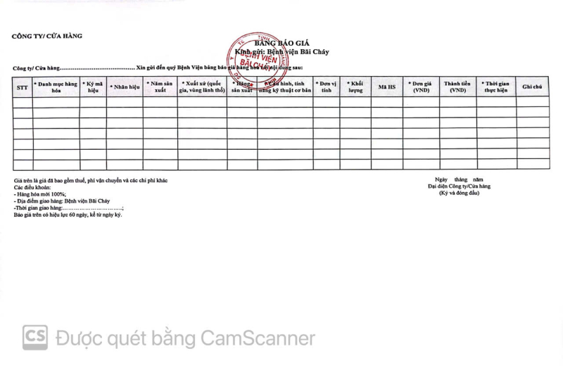 Thông báo số 1574 về nhu cầu mua sắm vật tư tiêu hao