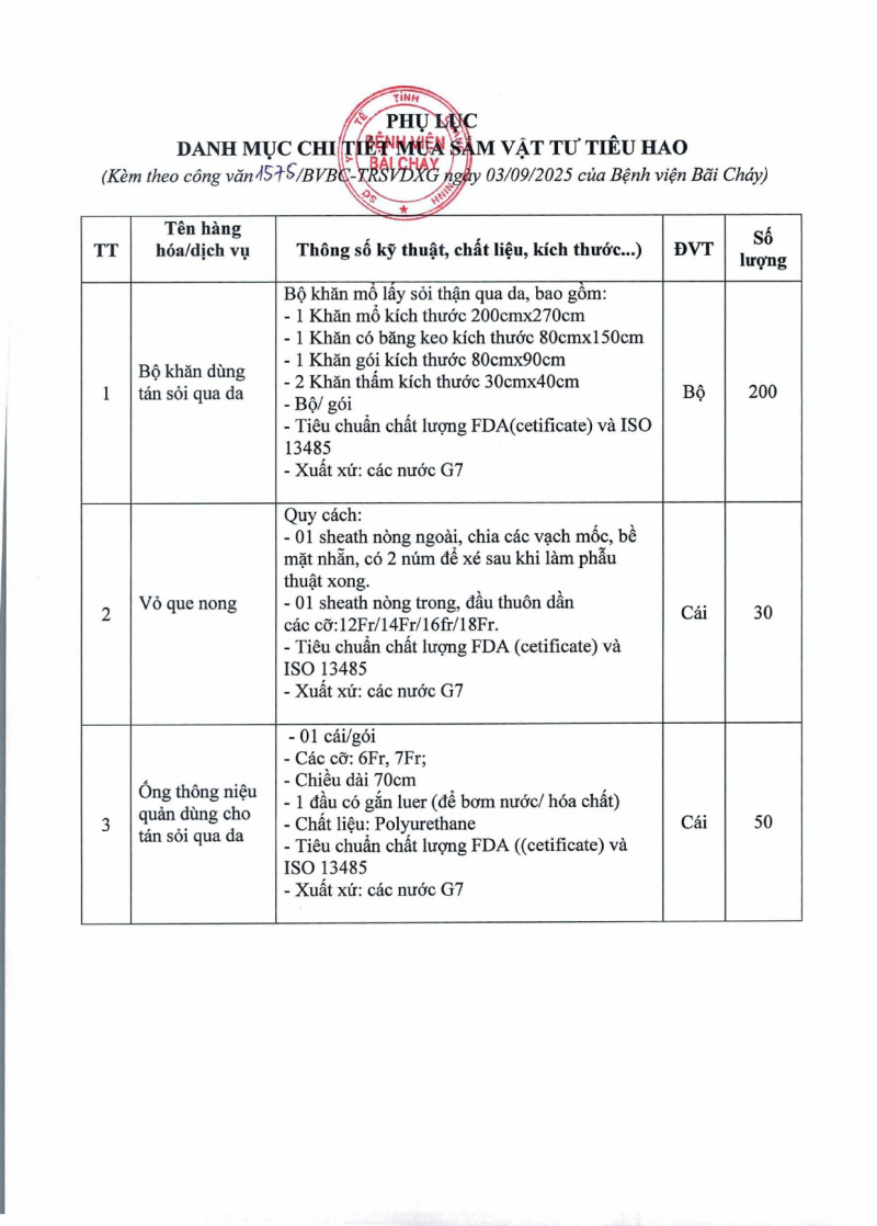 Thông báo số 1575 về nhu cầu mua sắm vật tư tiêu hao