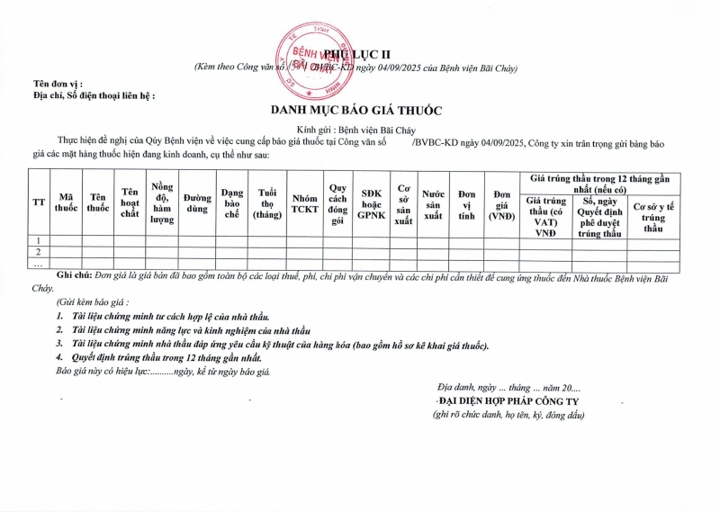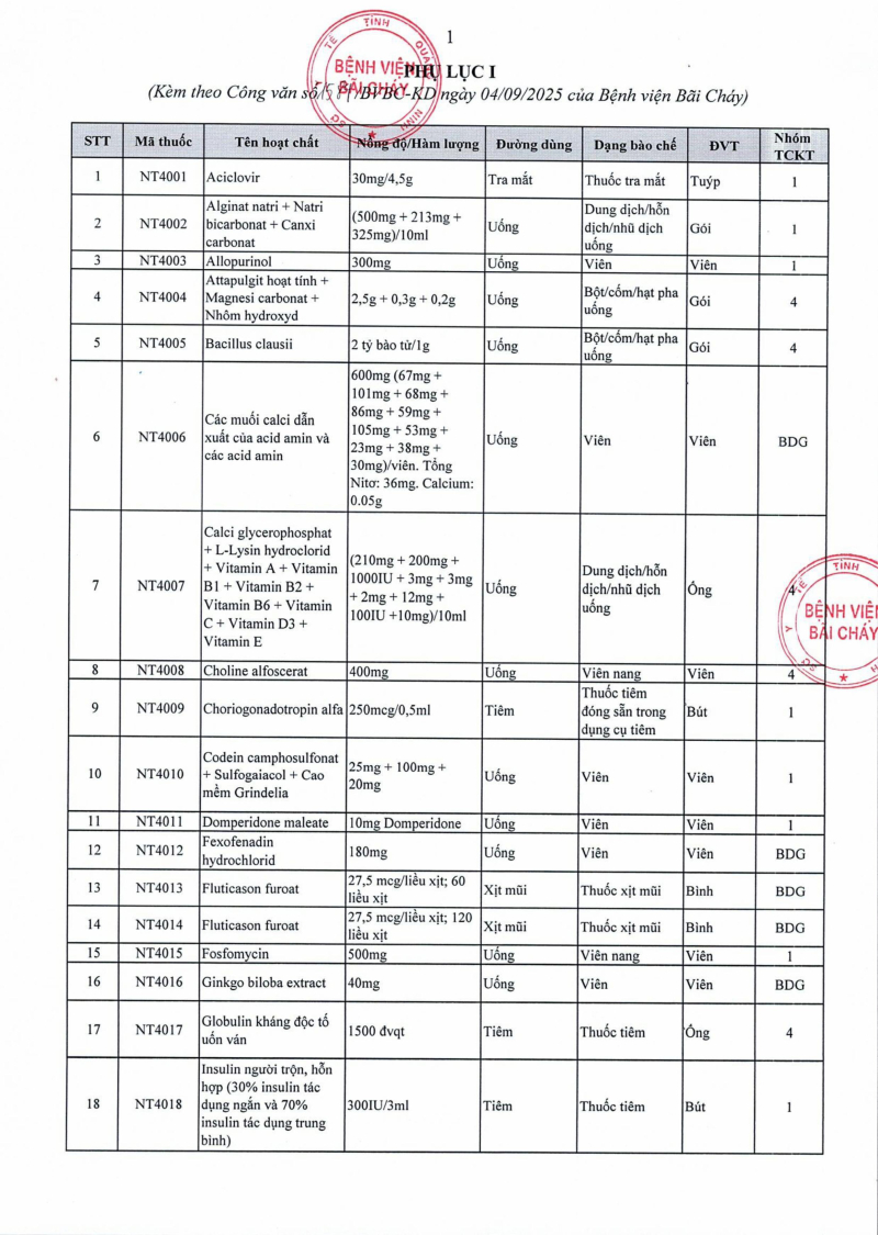 Thông báo số 1584 về mu cầu báo giá thuốc cho Nhà thuốc Bệnh viện lần 4