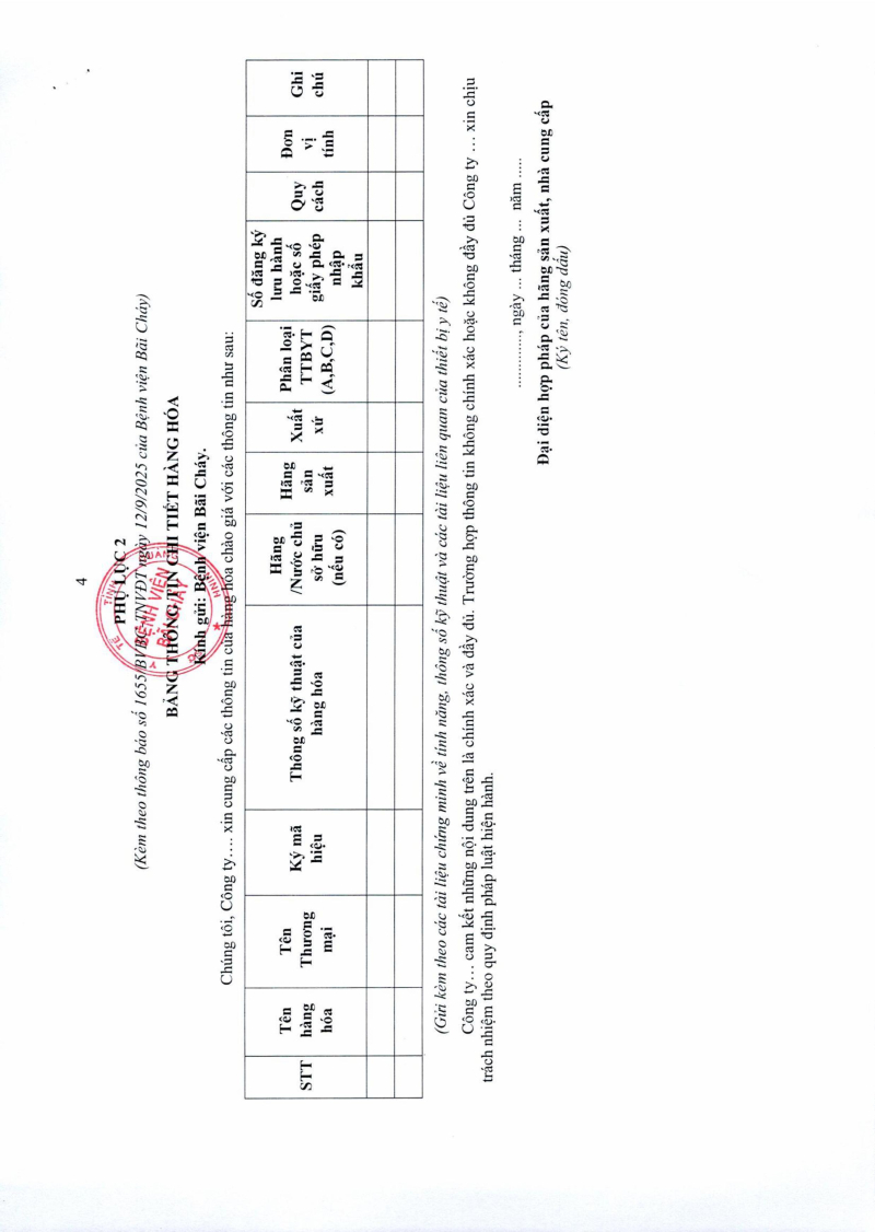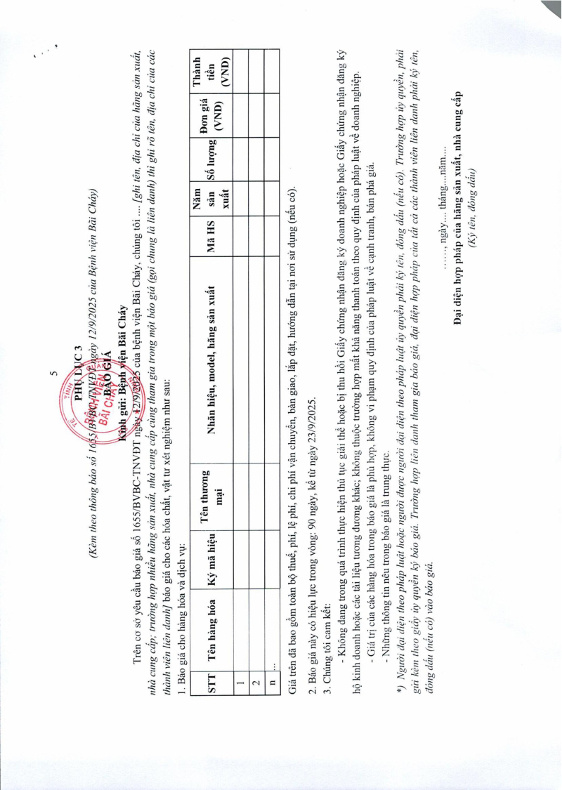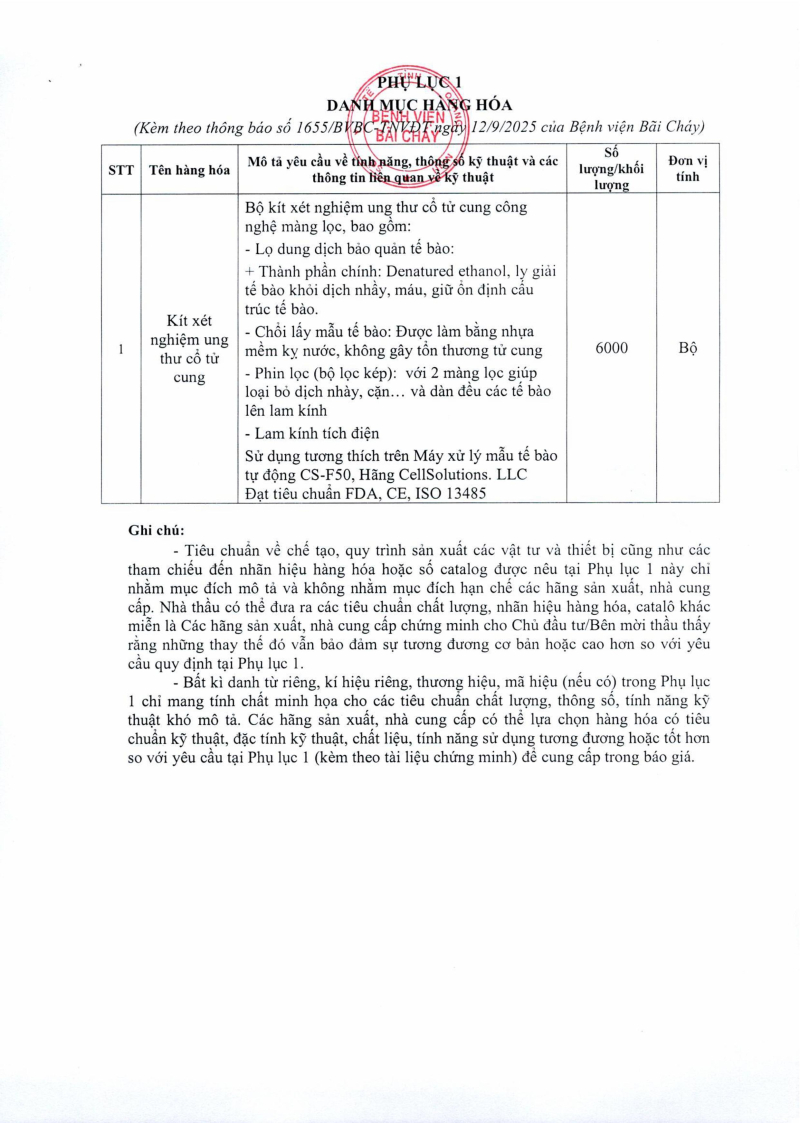 Thông báo số 1655 về nhu cầu mua sắm kít xét nghiệm ung thư cổ tử cung sử dụng cho máy CellSols, CS-F500 Procecssor, hãng CellSoltions, LCC năm 2025, 2026