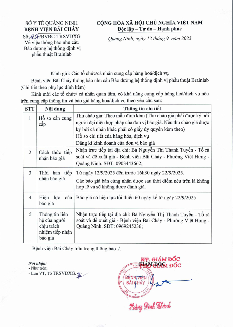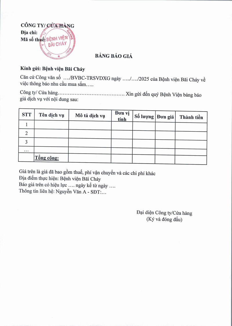 Thông báo 635 về nhu cầu mua sắm vật tư y tế phục vụ công tác chuyên môn