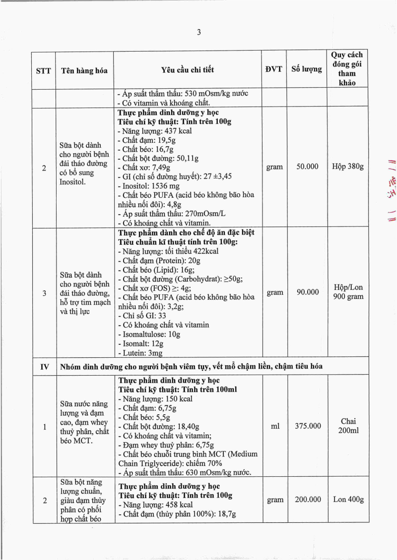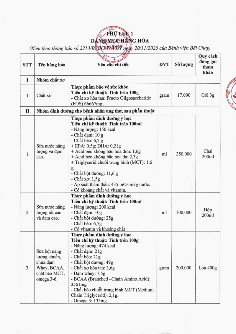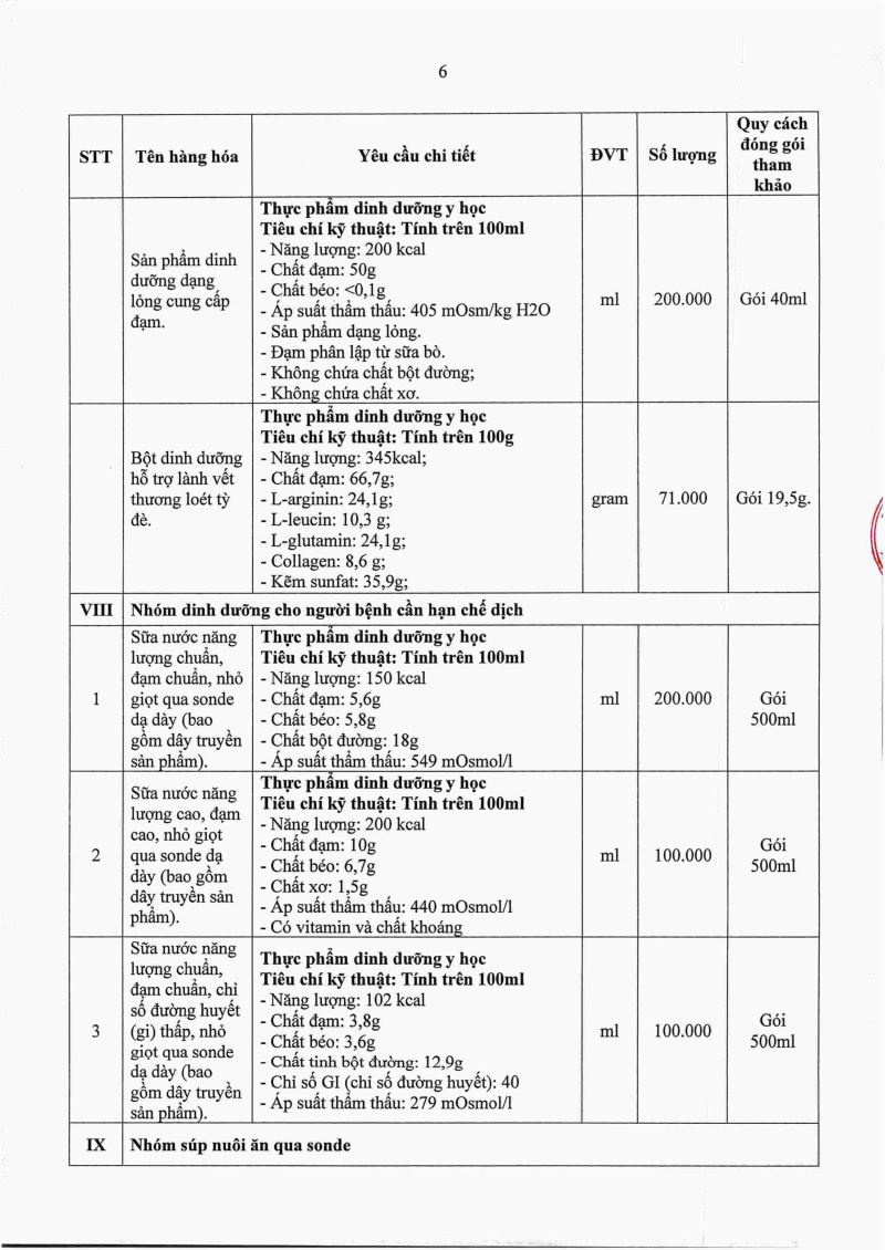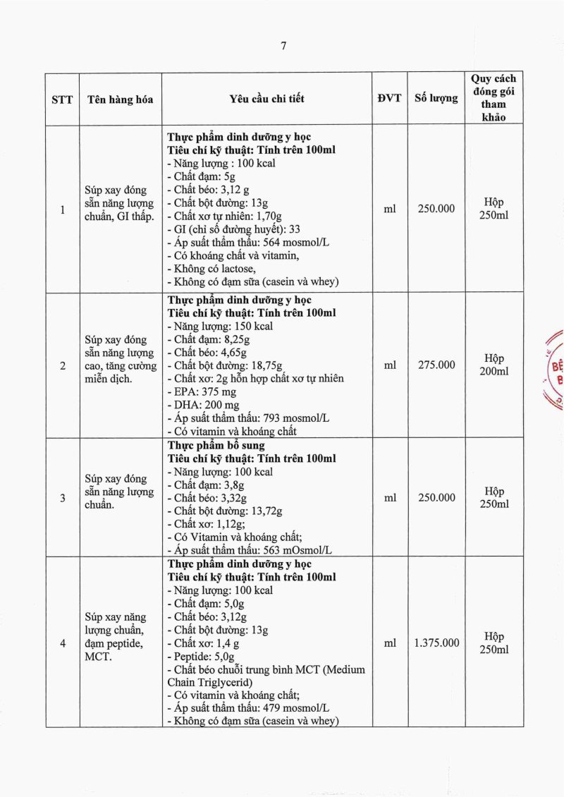 Thông báo số 2213 về nhu cầu sản phẩm dinh dưỡng đường tiêu hóa cho người bệnh năm 2026