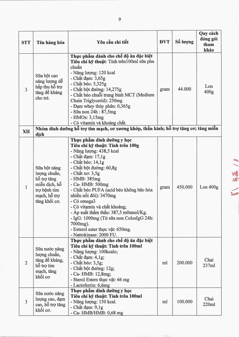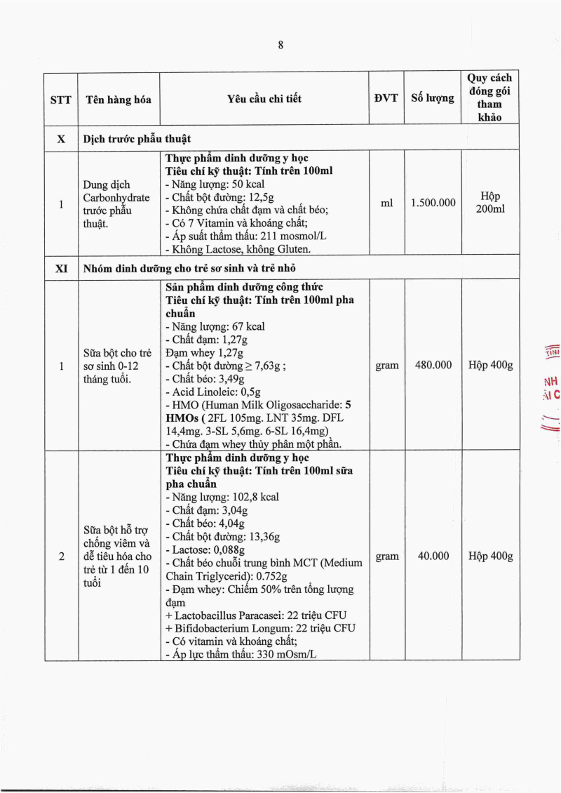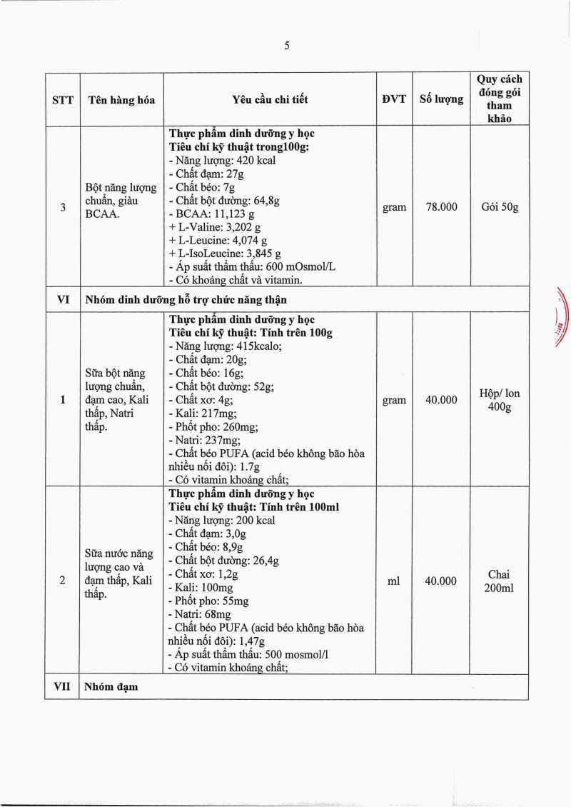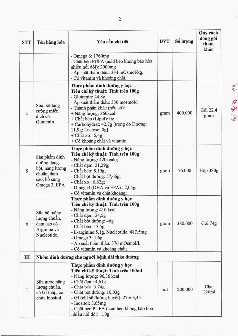 Thông báo số 2213 về nhu cầu sản phẩm dinh dưỡng đường tiêu hóa cho người bệnh năm 2026