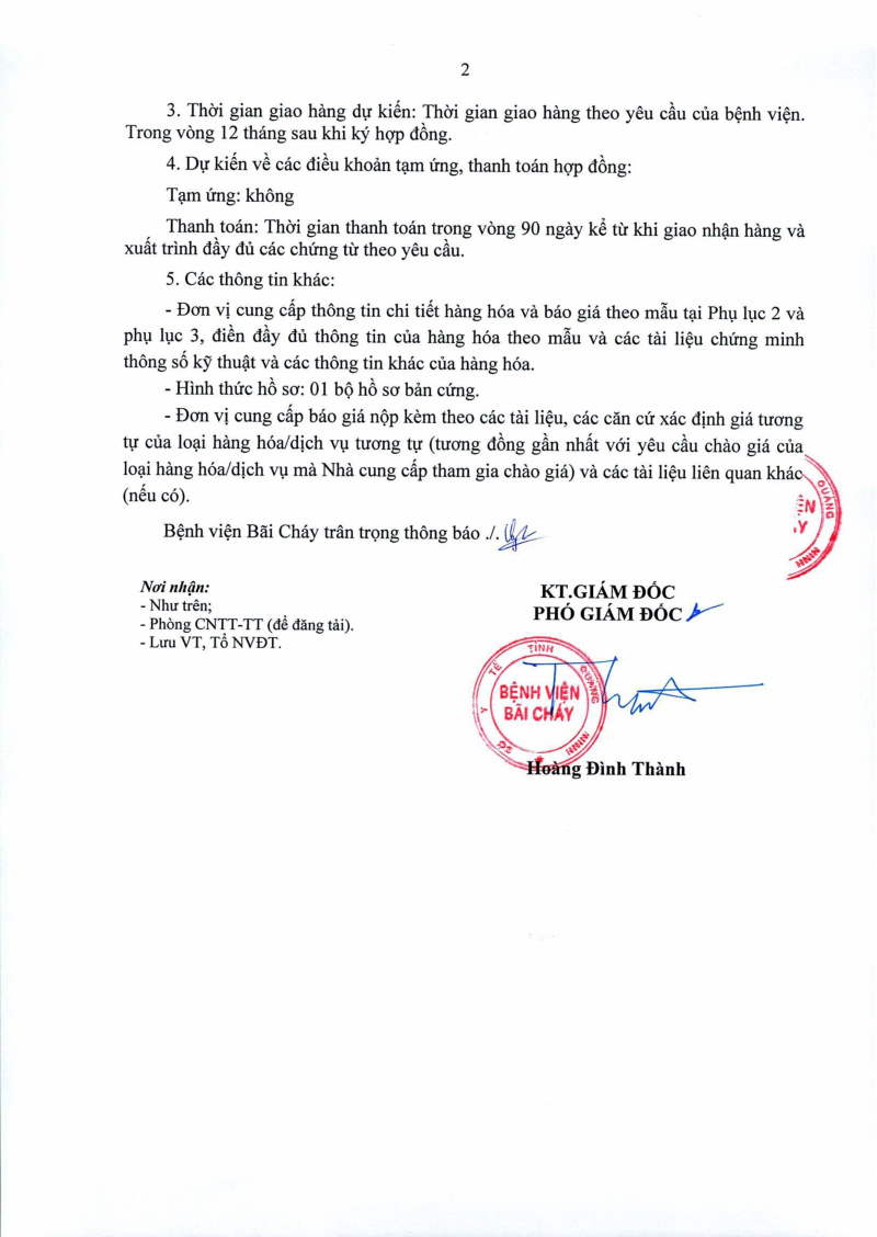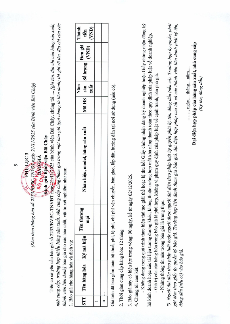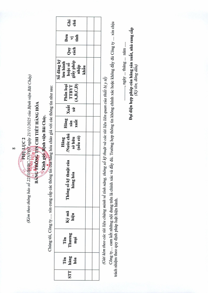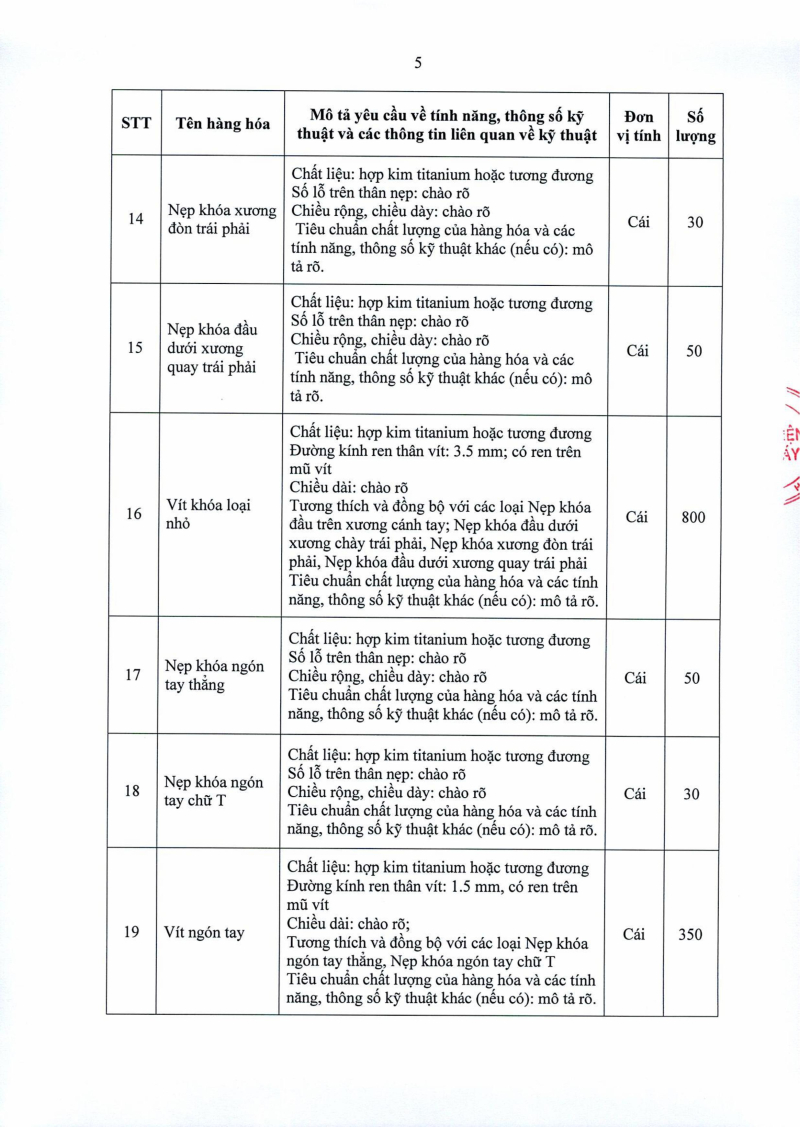Thông báo số 2233 về nhu cầu mua sắm đinh nẹp vít chấn thương phục vụ công tác chuyên môn năm 2026