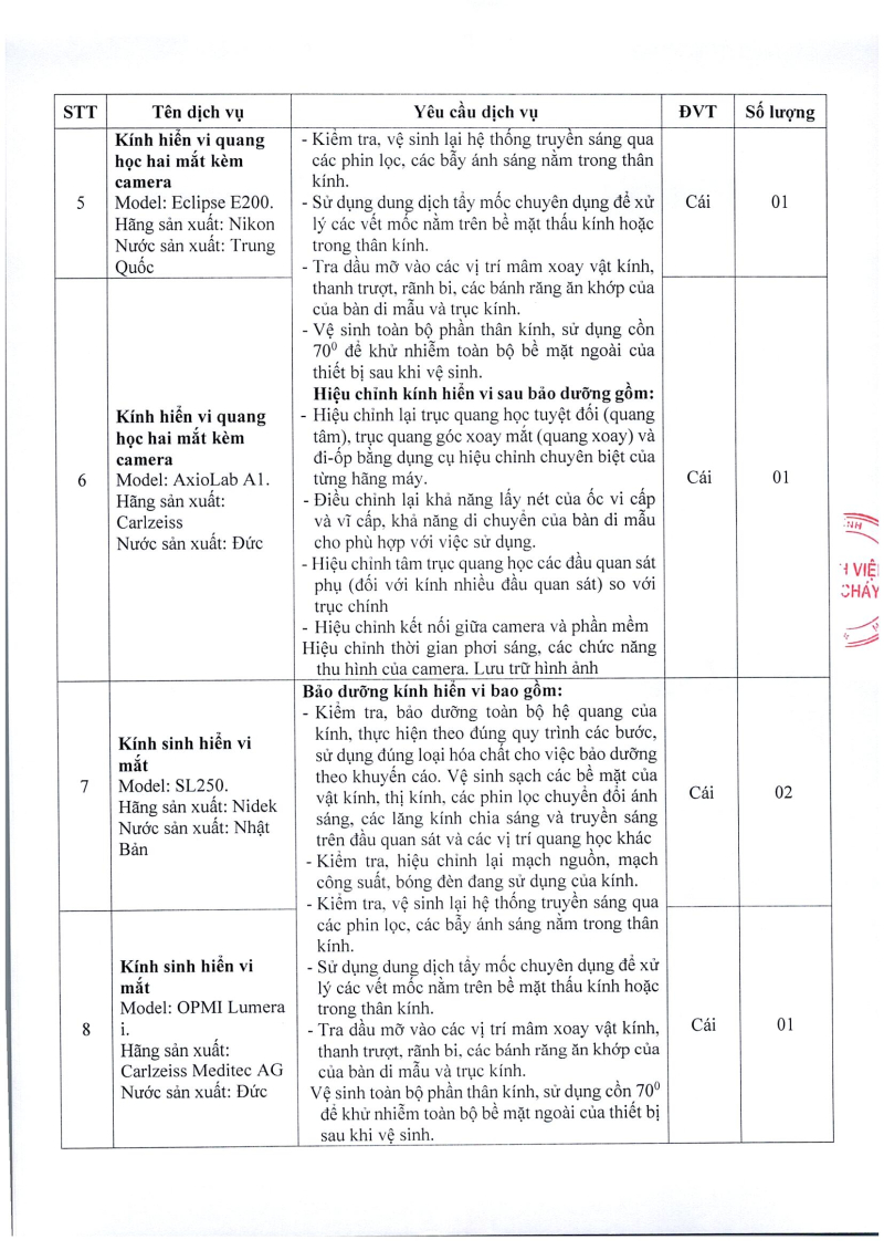 Thông báo số 241 về nhu cầu dịch vụ bảo dưỡng các kính hiển vi quang học và sinh hiển vi mắt 2026/02/05 01:56
