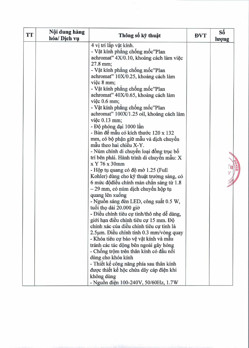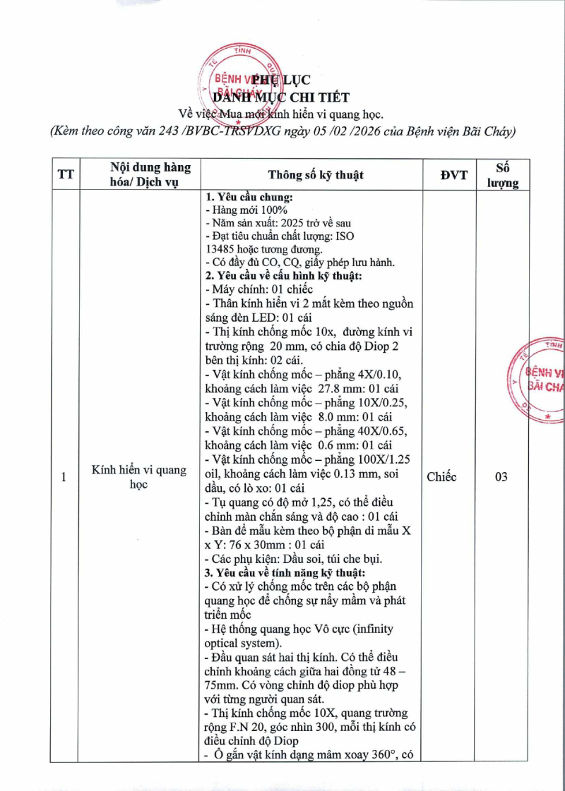 Thông báo số 243 về nhu cầu mua mới kính hiển vi quang học