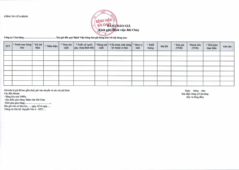 Bảng giá dịch vụ