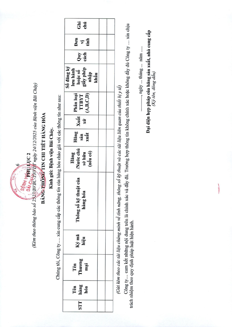 Thông báo số 2527 về nhu cầu mua sắm vật tư y tế can thiệp cho khoa chẩn đoán hình ảnh năm 2026 -2027 2025/12/24 03:27