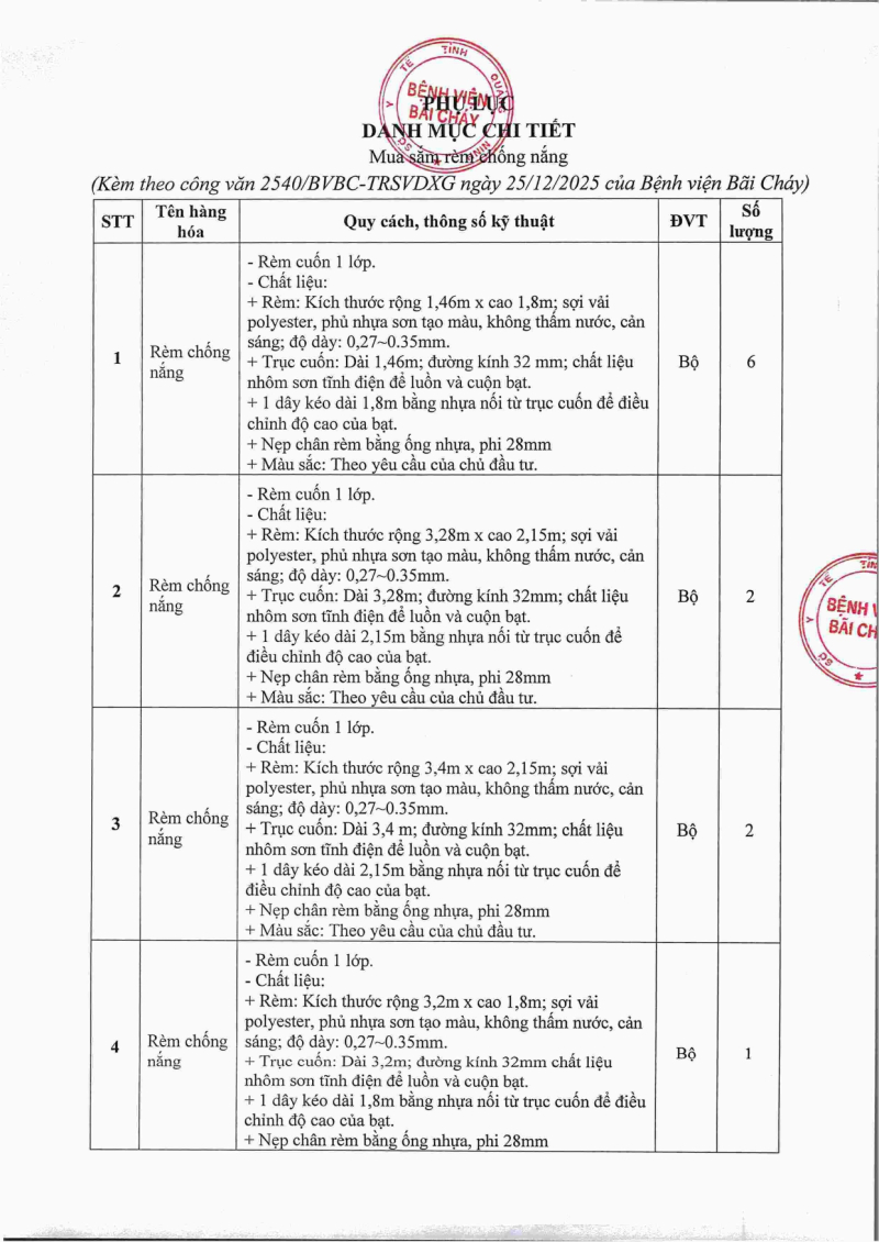 Thông báo số 2540 về nhu cầu mua rèm chống nắng