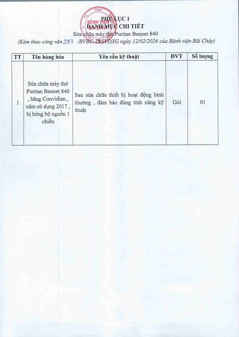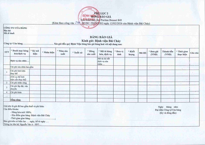 Thông báo số 622 về nhu cầu bảo dưỡng định kỳ máy hấp tiệt trùng HS–5035