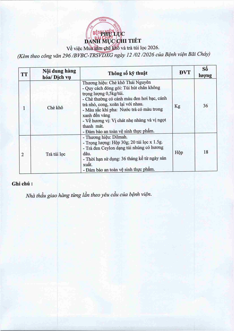 Thông báo số 296 về nhu cầu mua sắm chè khô và trà túi lọc 2026