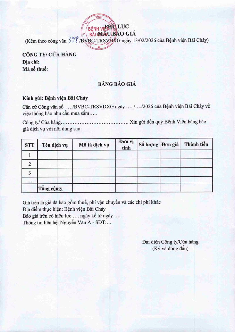 Bảng giá dịch vụ