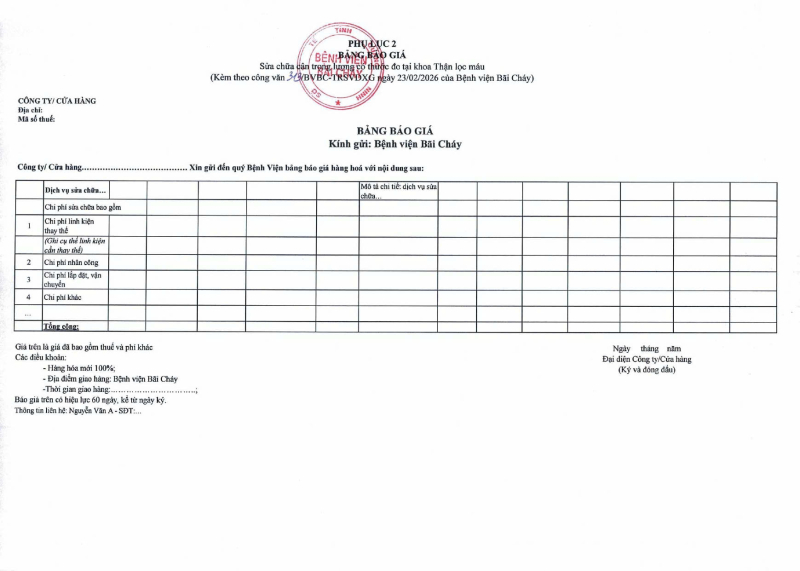 Thông báo số 313 về nhu cầu sửa chữa cân trọng lượng có thước đo tại khoa Thận lọc máu 2026/02/23 08:09