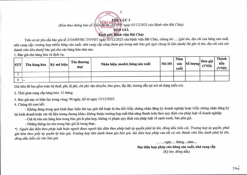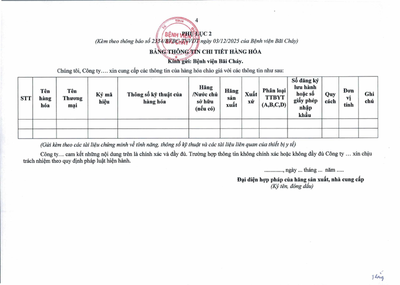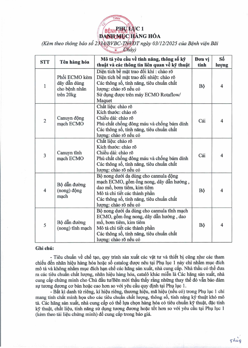 Thông báo số 3334 về nhu cầu mua sắm vật tư cho máy EMO