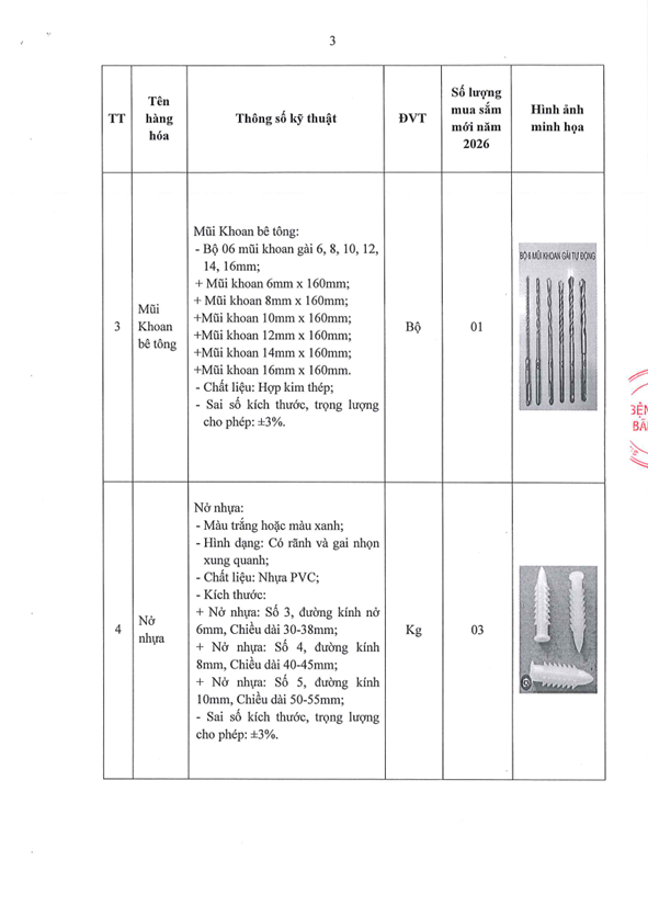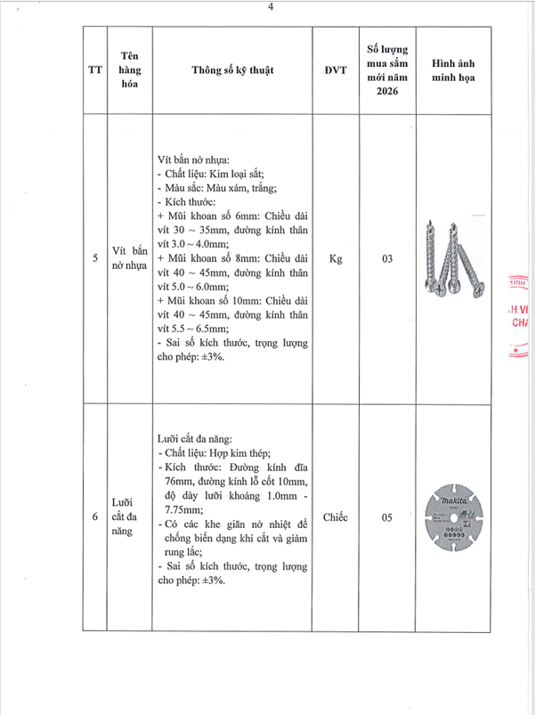 Thông báo 611 nhu cầu mua sắm dụng cụ và phụ kiện cửa