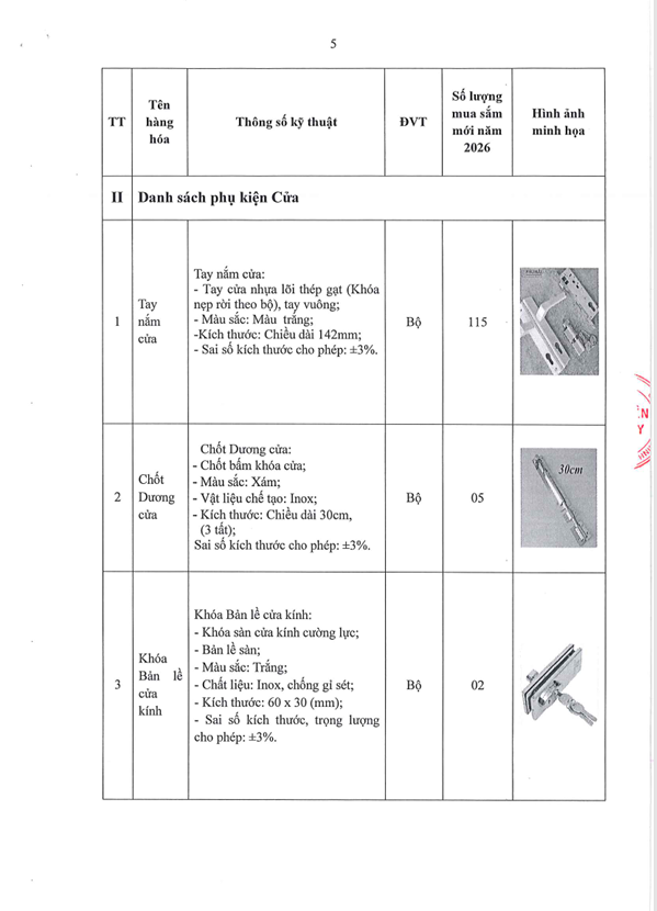 Thông báo số 361 về nhu cầu mua sắm dụng cụ và phụ kiện cửa