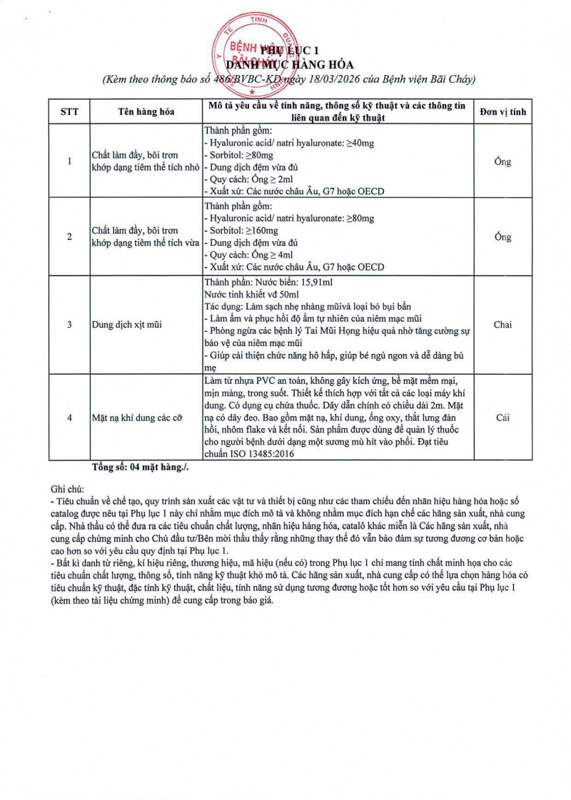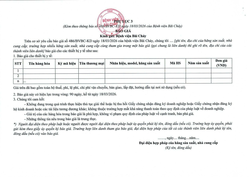 Thông báo số 486 về nhu cầu mua sắm thiết bị y tế cho nhà thuốc bệnh viện năm 2026