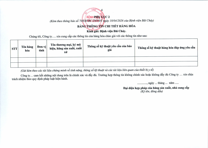 Thông báo số 709 về nhu cầu mua sắm vật tư can thiệp mạch, xquang can thiệp 2026,2027 2026/04/10 13:52